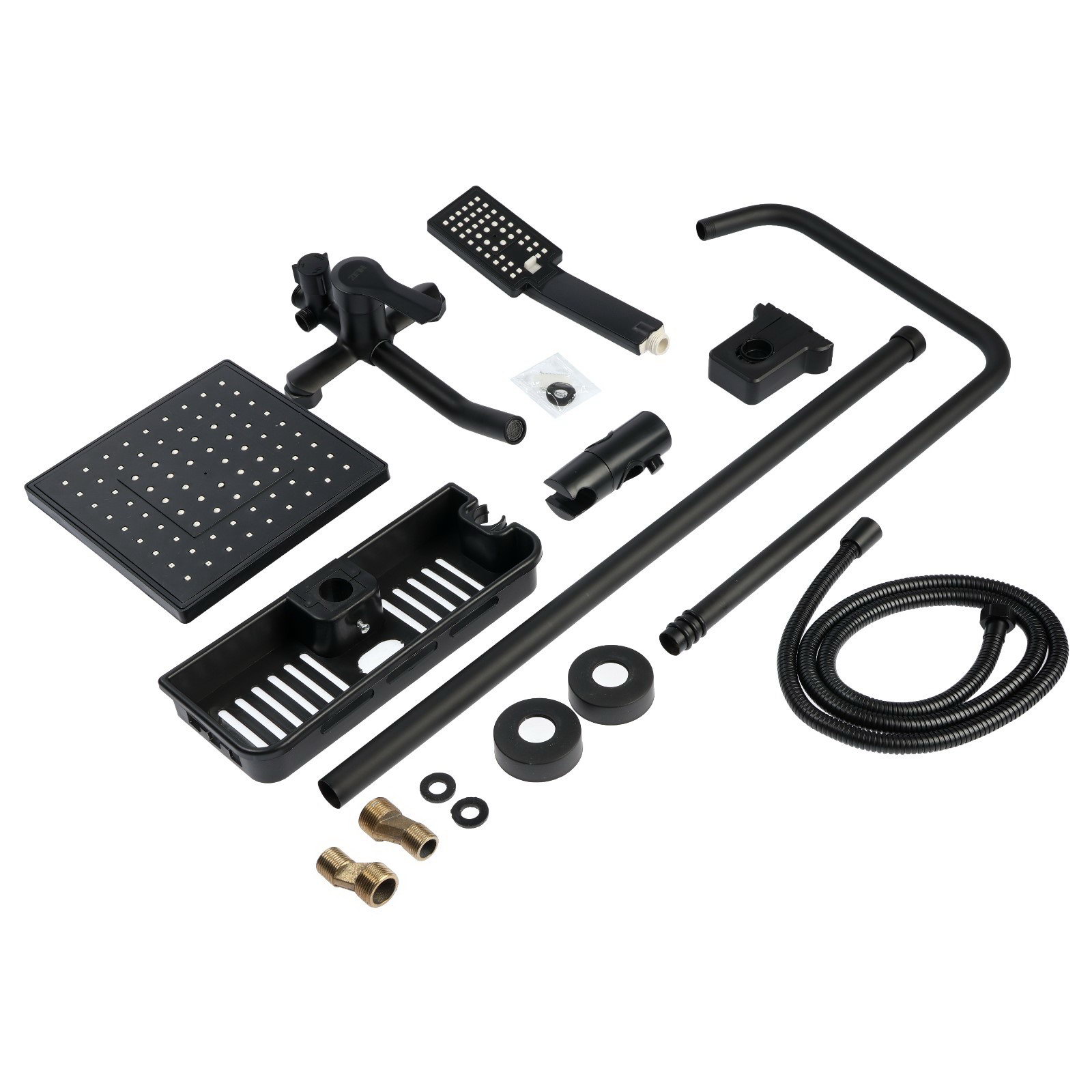 Душевая система Z3861, смеситель, тропическая и ручная лейка, полка, латунь, черная, 31x72x11.5 см., ZEIN, Китай