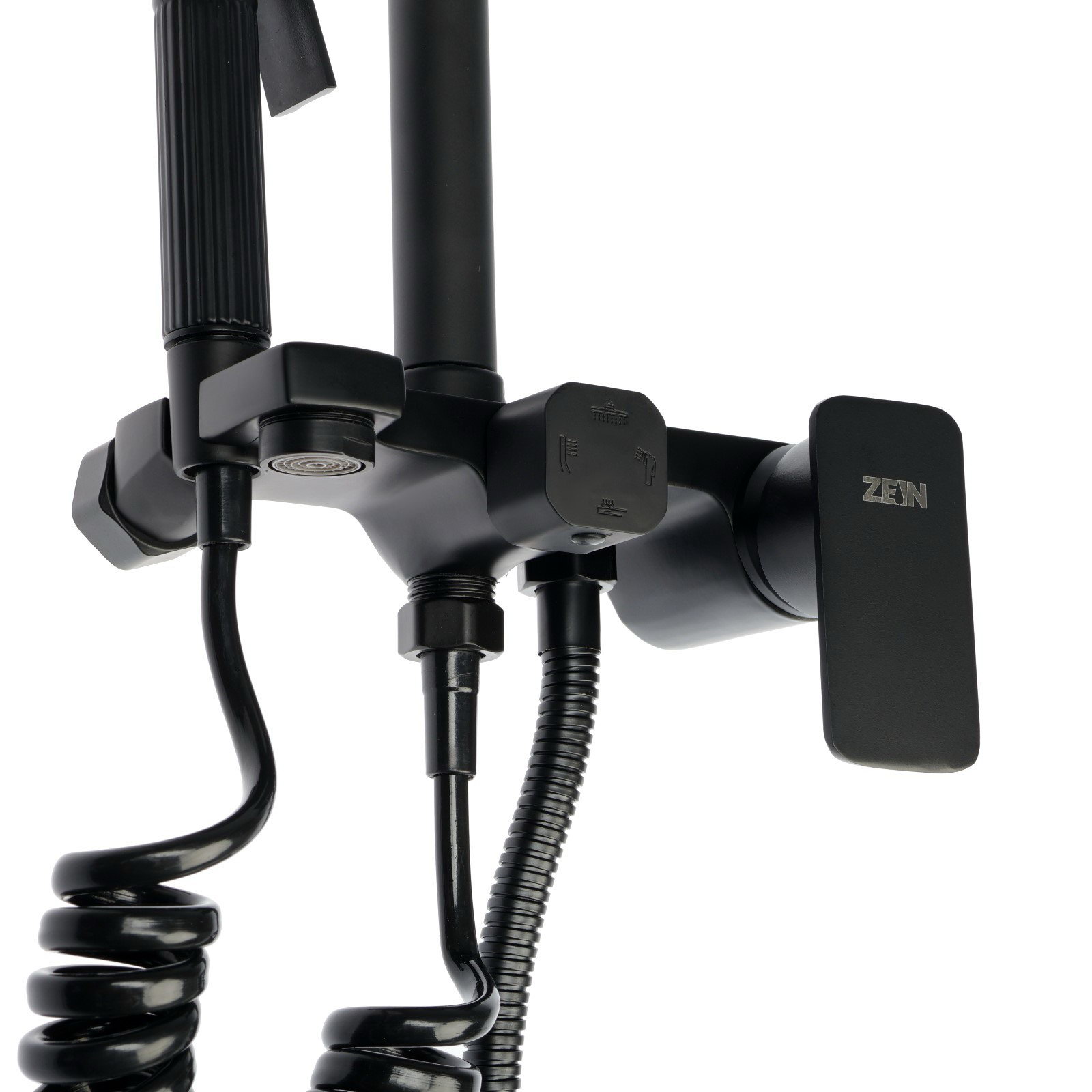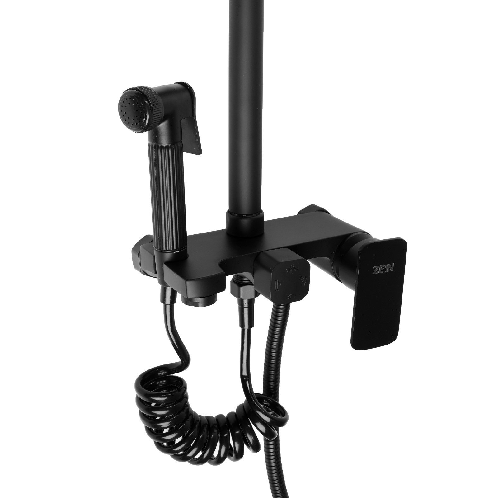 Душевая система Z3863, смеситель, верхняя, ручная и гигиеническая лейка, полка, черная, 31x72x11.5 см., ZEIN, Китай