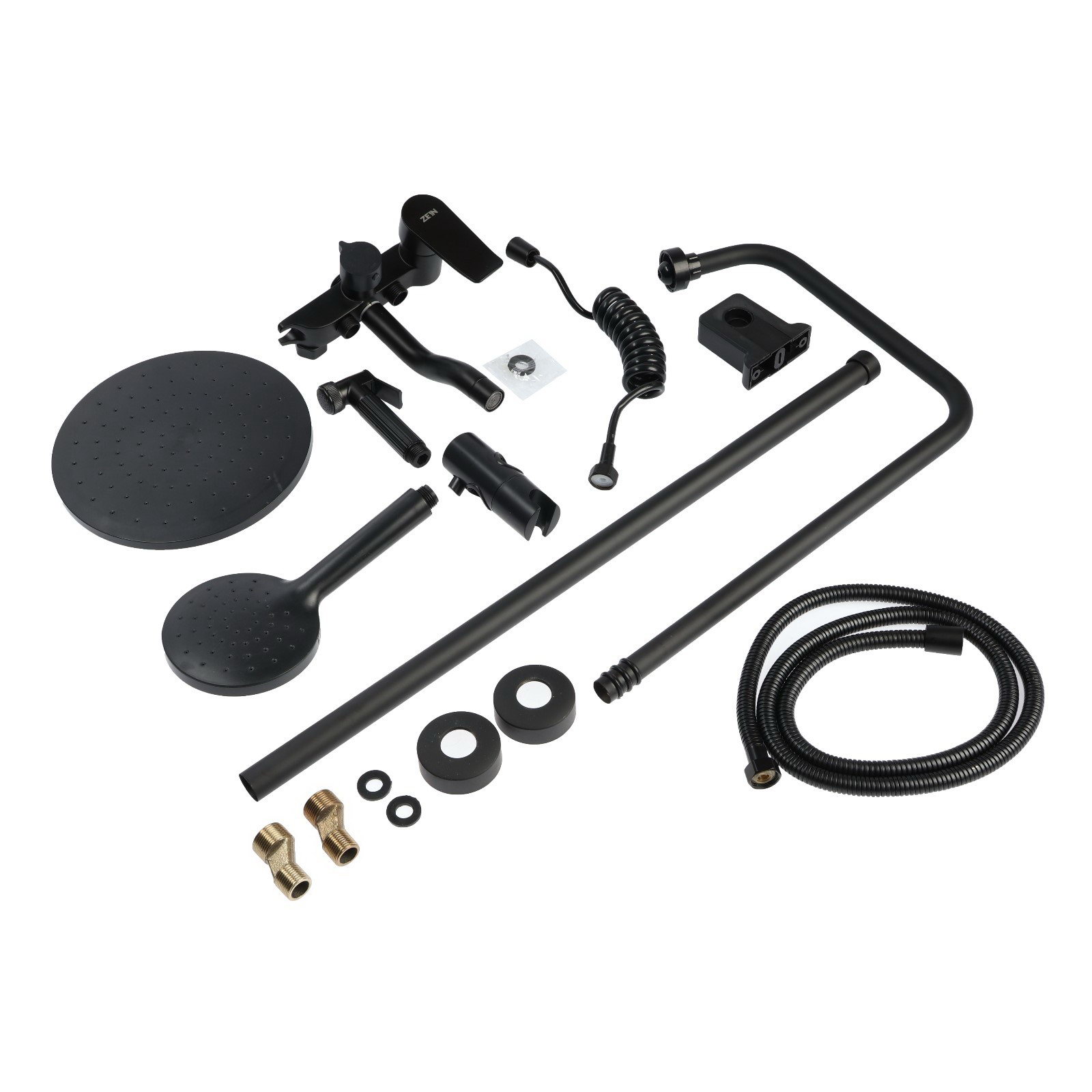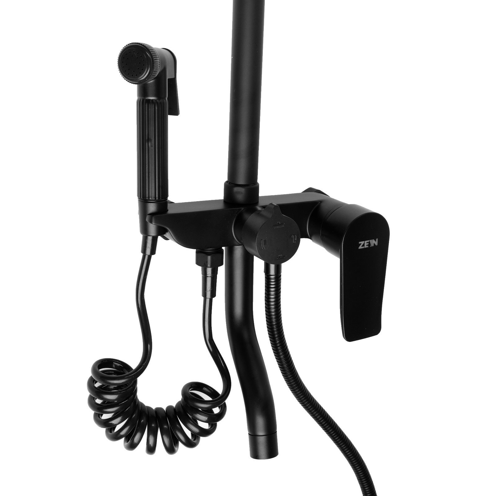 Душевая система Z3864, смеситель, верхняя, ручная и гигиеническая лейка, латунь, черная, 31x72x11.5 см., ZEIN, Китай