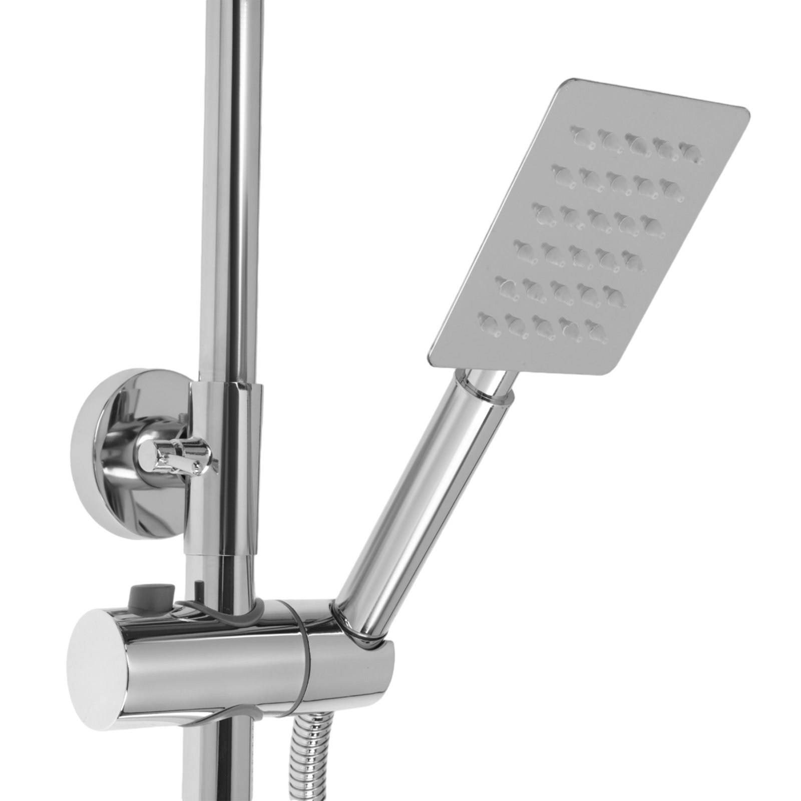 Размер упаковки: 32.5 x 14 x 75 см. Цвет: Хромированный Со смесителем: Да С ручной лейкой: Да Форма верхней лейки: Квадратная Материал корпуса: Латунь Тип управления: Рычажный Тип излива: S -образный С изливом: Да tnved: 8481801000 tnved: 8481801000 Гарантийный срок, мес.: 12 Душевая система ZEIN предназначена для обустройства ванной комнаты. Конструкция фиксируется на стене. Модель оснащена смесителем с изливом. На штанге расположен держатель для лейки со шлангом. Сверху находится тропическая лейка. За лейками просто ухаживать: силиконовые форсунки легко очищаются от известкового налета, достаточно просто потереть их пальцем. Удобное переключение горячей/холодной воды рычагом позволяет регулировать температуру воды до наиболее комфортных значений одной рукой. | ||