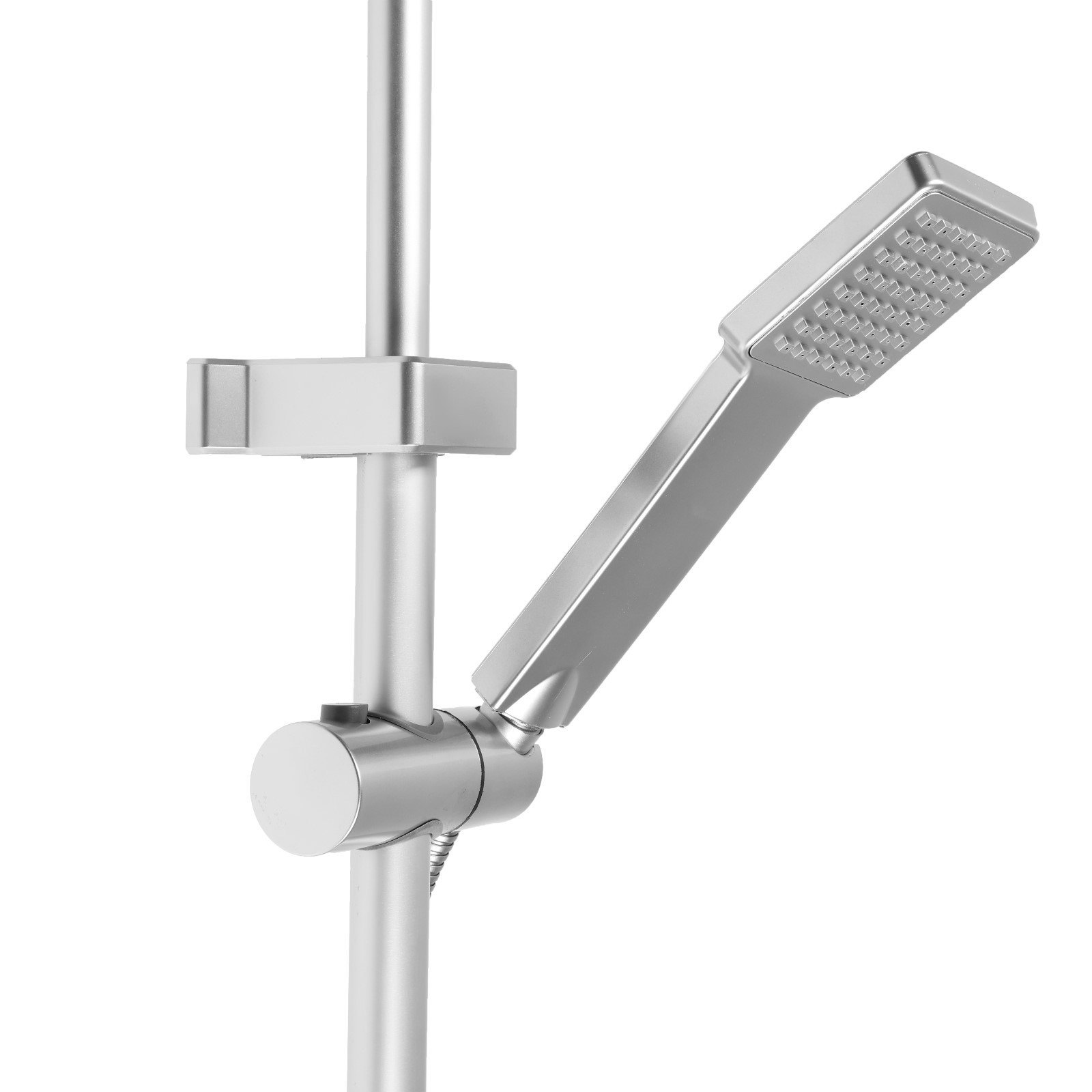 Тип излива: Изогнутый, Поворотный Размер упаковки: 31 x 9.5 x 72 см. С ручной лейкой: Да Со смесителем: Да Цвет: Хромированный Форма верхней лейки: Квадратная Материал корпуса: Алюминий Тип управления: Рычажный С изливом: Да tnved: 8481801000 tnved: 8481801000 Гарантийный срок, мес.: 12 Душевая система ZEIN предназначена для обустройства ванной комнаты. Конструкция фиксируется на стене. Модель оснащена смесителем с изливом. На штанге расположен держатель для лейки со шлангом. Сверху находится тропическая лейка. За лейками просто ухаживать: силиконовые форсунки легко очищаются от известкового налета, достаточно просто потереть их пальцем. Удобное переключение горячей/холодной воды рычагом позволяет регулировать температуру воды до наиболее комфортных значений одной рукой. | ||