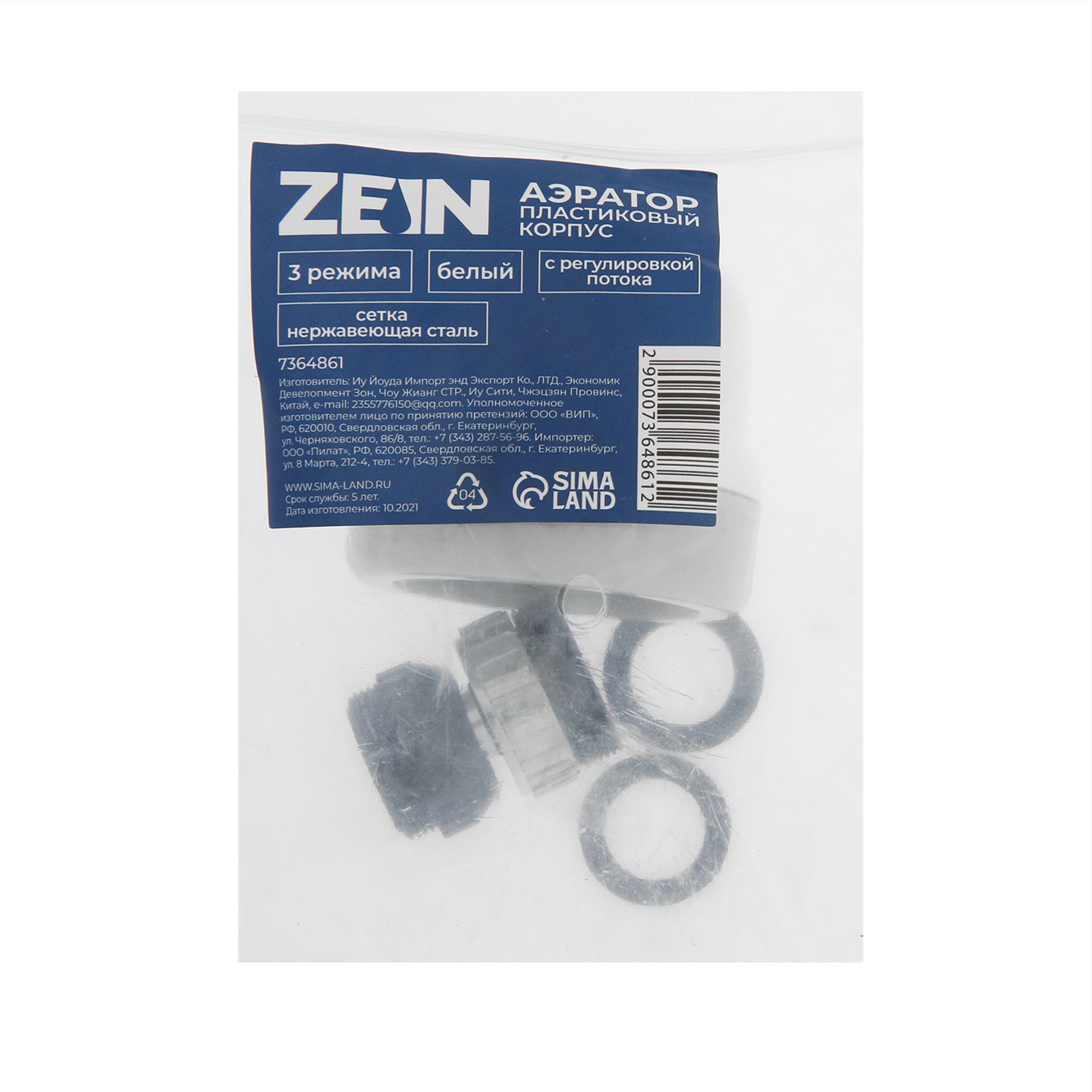 Аэратор с регулировкой потока, сетка из нержавейки, 3 режима, пластик, белый, 5.5x8.5x5.5 см., ZEIN, Китай