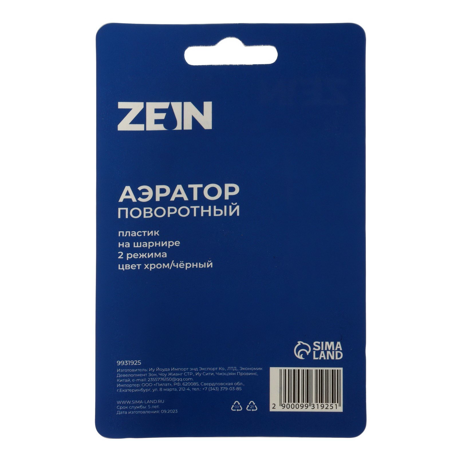 Аэратор Z3600, поворотный, на шарнире, 2 режима, хром/черный, 3.8x8.5x3.8 см., ZEIN, Китай