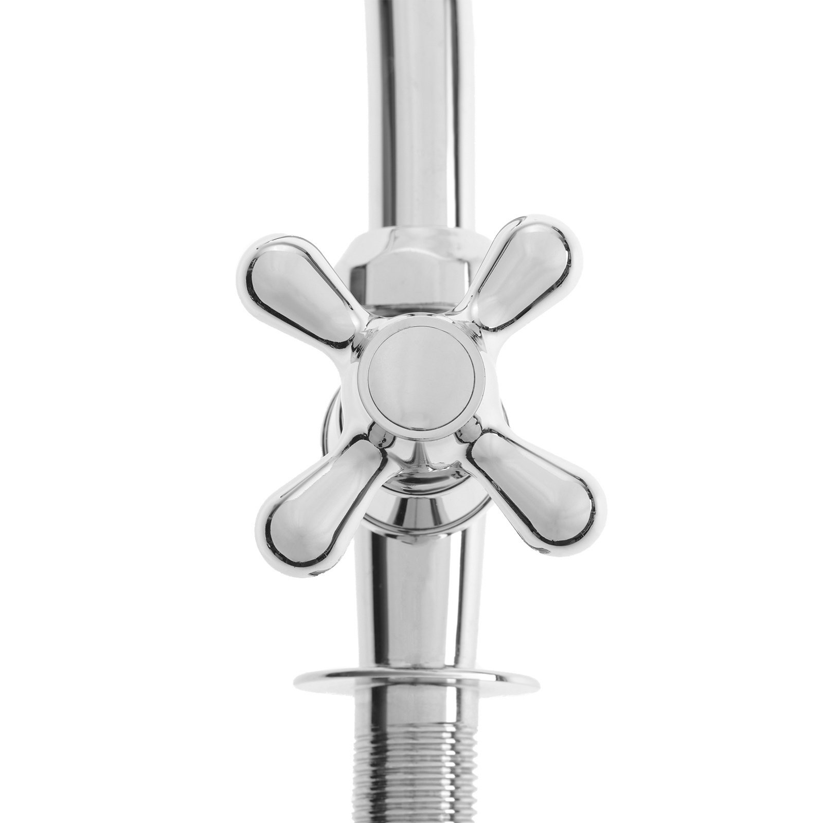 Тип излива: Высокий, Поворотный излив Размер упаковки: 17 x 7.5 x 33 см. Гарантийный срок, мес.: 12 Гарантийный срок, мес.: 12 tnved: 8481801700 Тип управления: Вентильный Вид установки: На раковину и столешницу Материал корпуса: Цинк Длина излива, мм: 120 Цвет: Хромированный Моносмеситель ZEIN Z10 выполнен в стильном хромированном исполнении, что придает ему современный и привлекательный вид. Оснащен моносмеситель кран-буксой 1/2" из латуни, что обеспечивает надежность и долговечность работы. Конструкция смесителя включает пластиковые элементы, что делает его легче и удобнее в установке. Модель поставляется без подводки. | ||