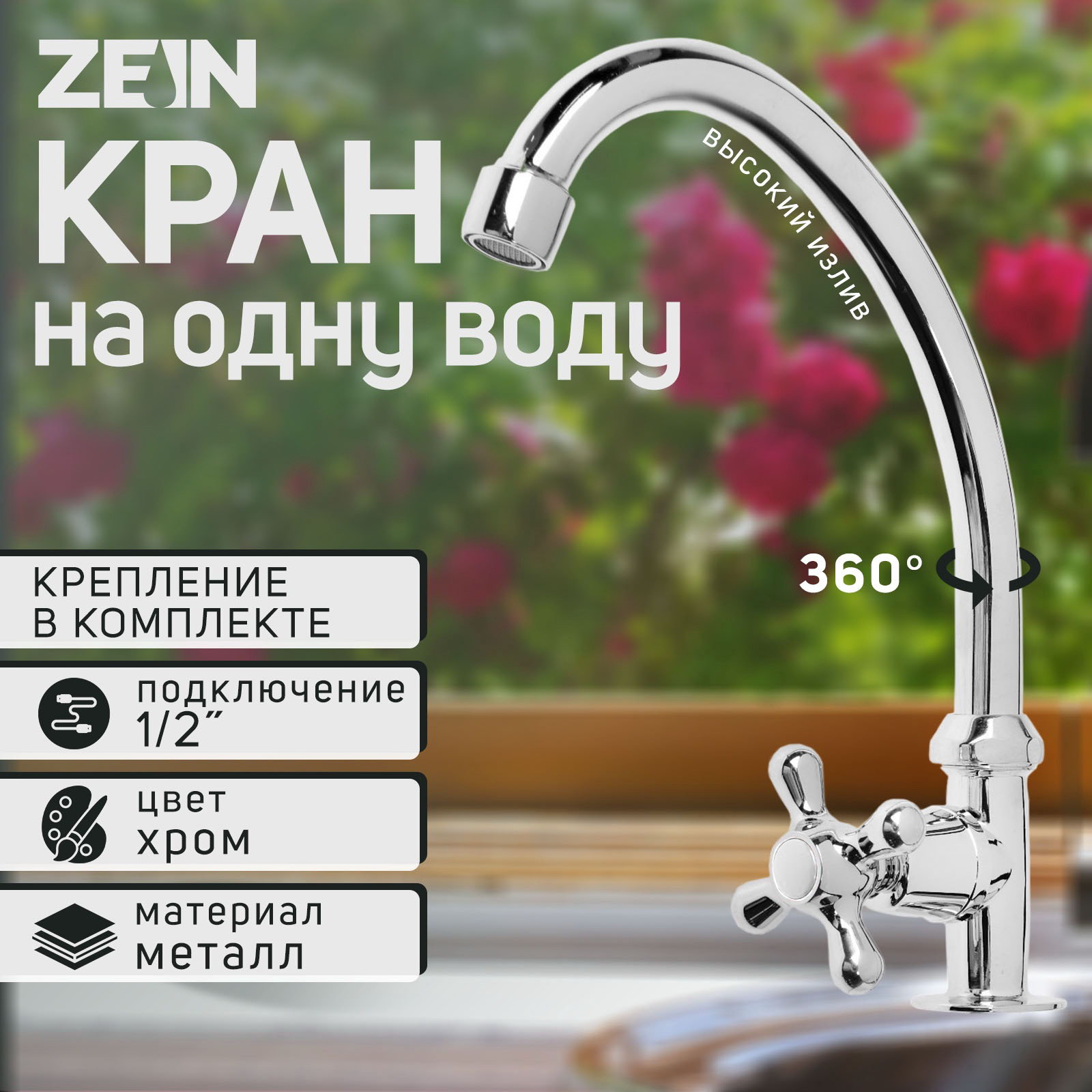 Моносмеситель Z10, кран-букса 1/2"латунь, пластик, без подводки, хром, 13x33x6 см., ZEIN, Китай