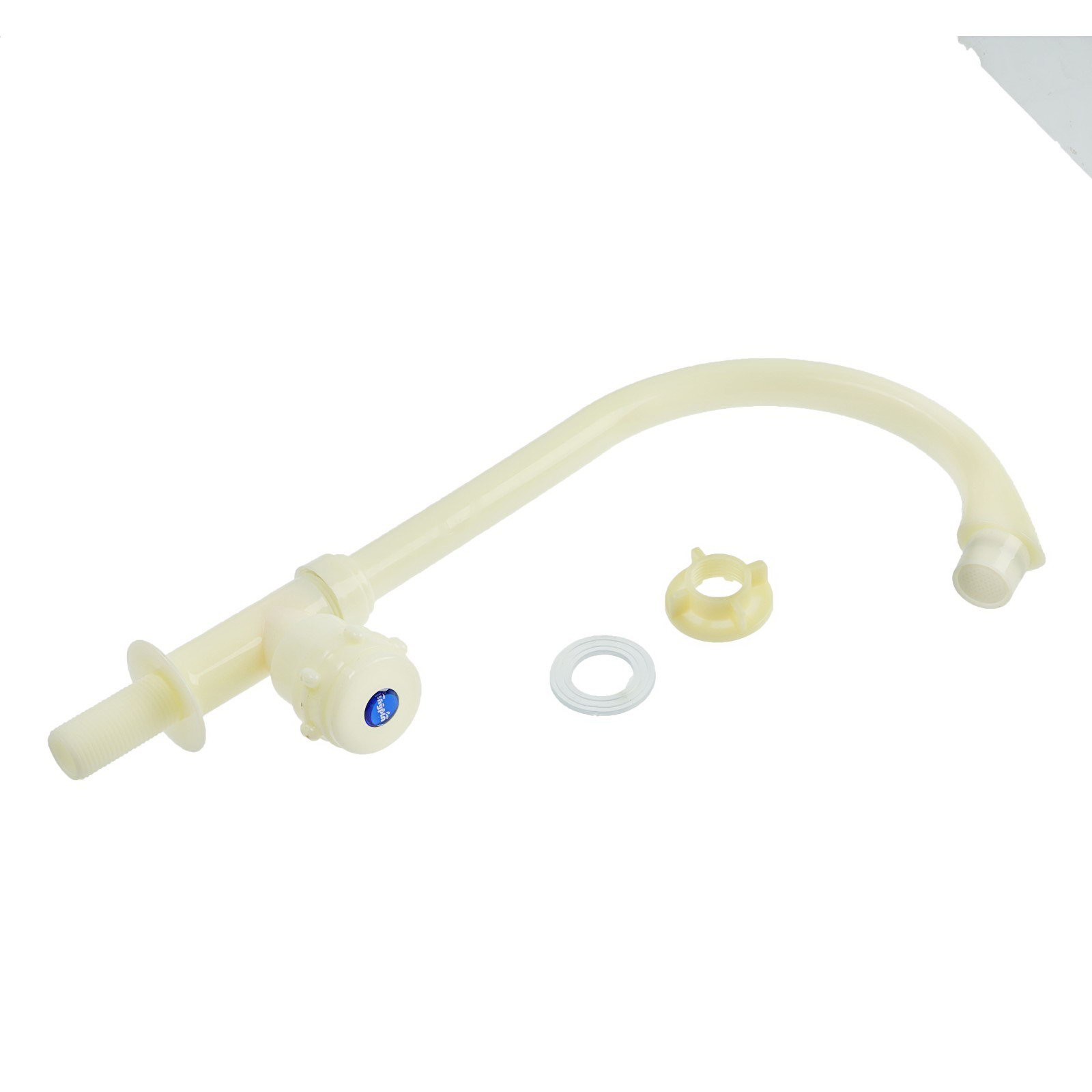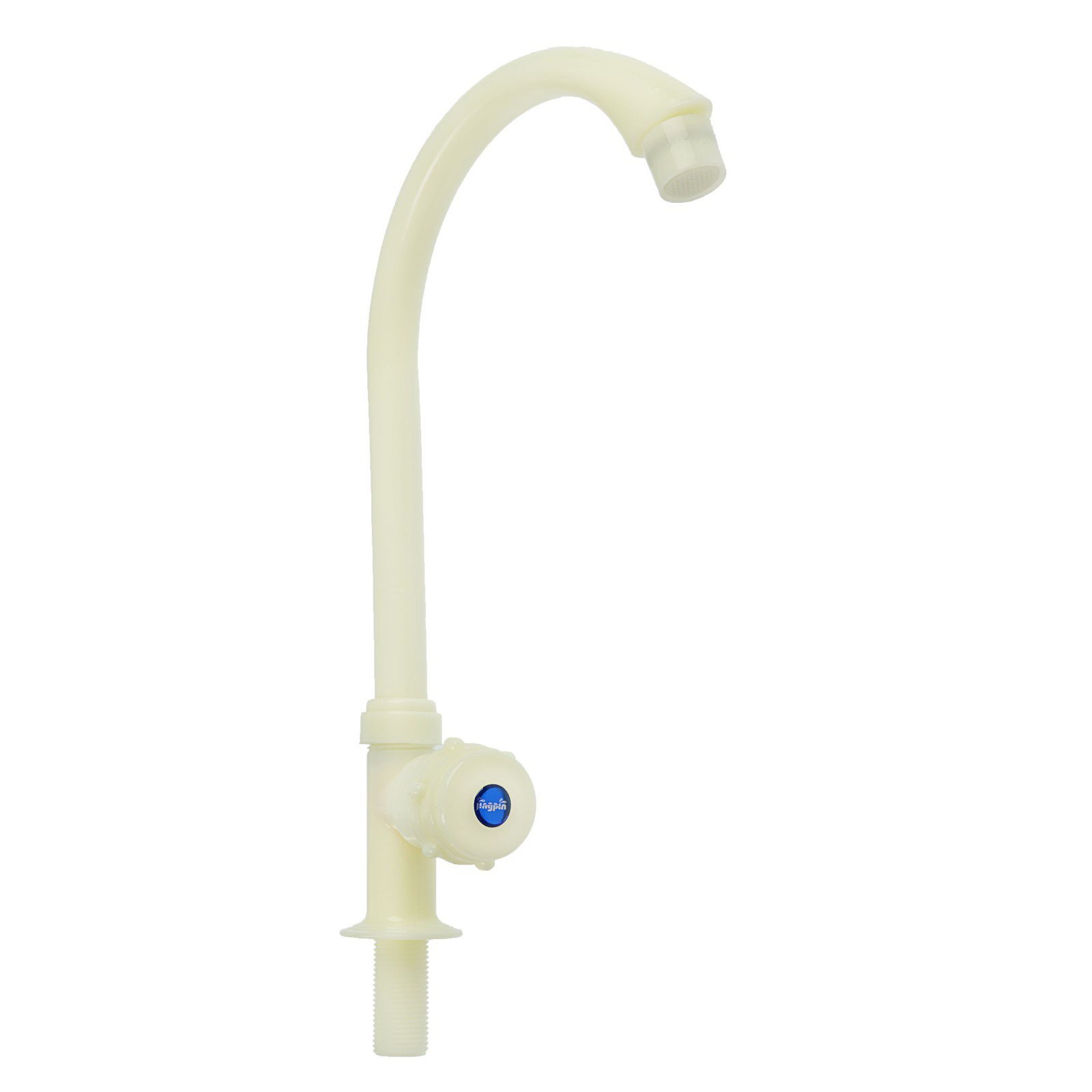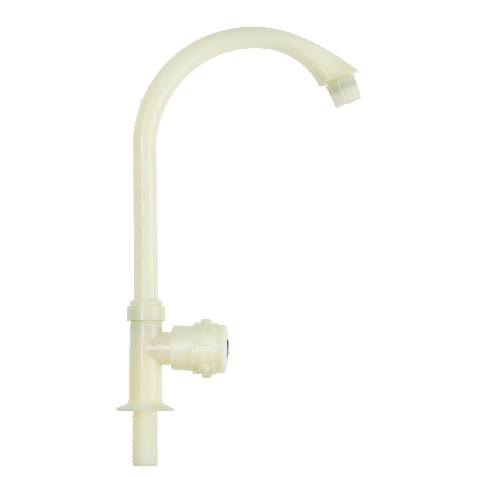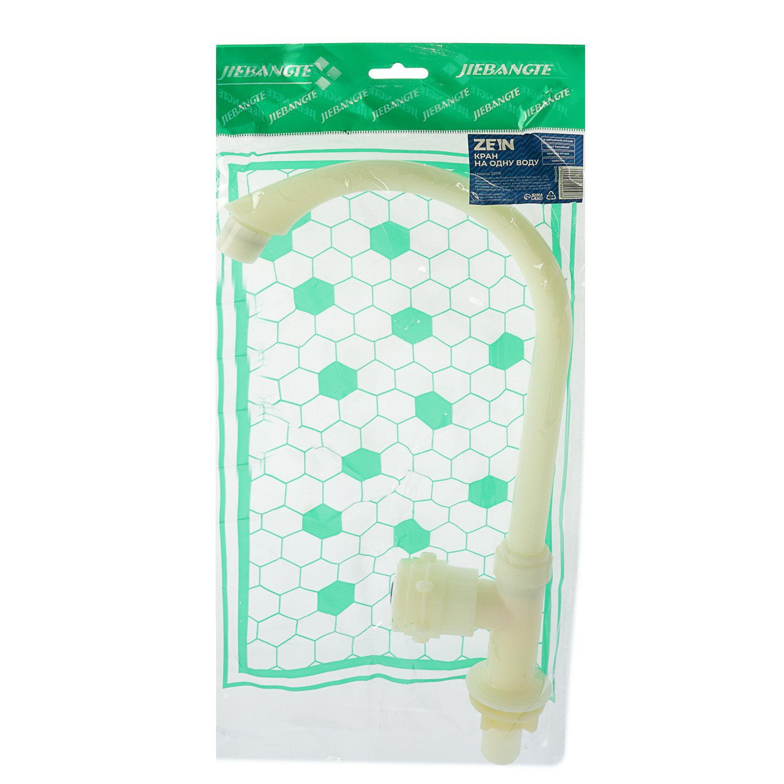 Кран на одну воду Z2018, круглая ручка, пластик, высокий R-образный излив, цвет "Рис", 16x32x4 см., ZEIN, Китай
