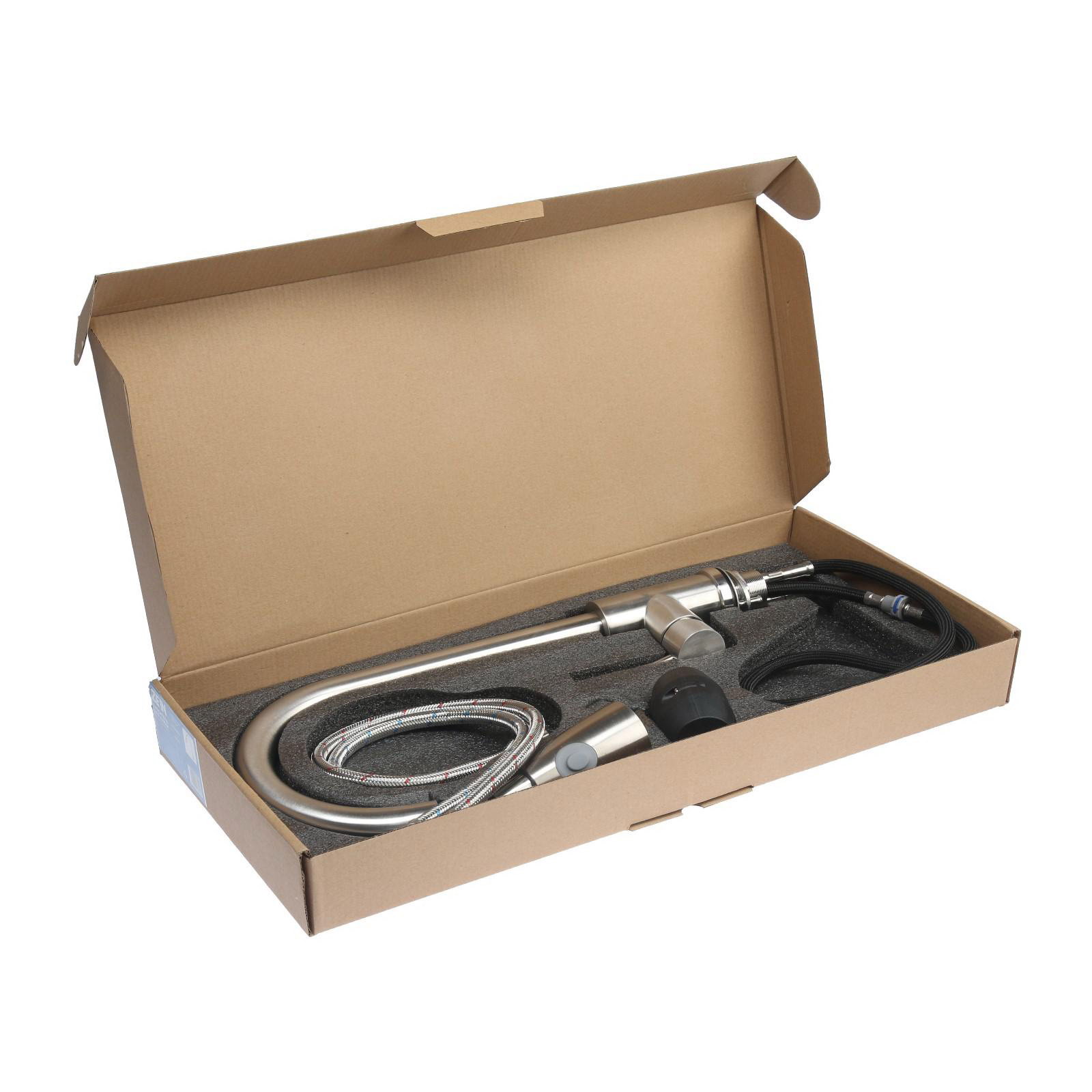 Смеситель для кухни Z1752, нержавеющая сталь, с выдвижной лейкой, 2 режима, цвет сатин, 21x42x4.5 см., ZEIN, Китай