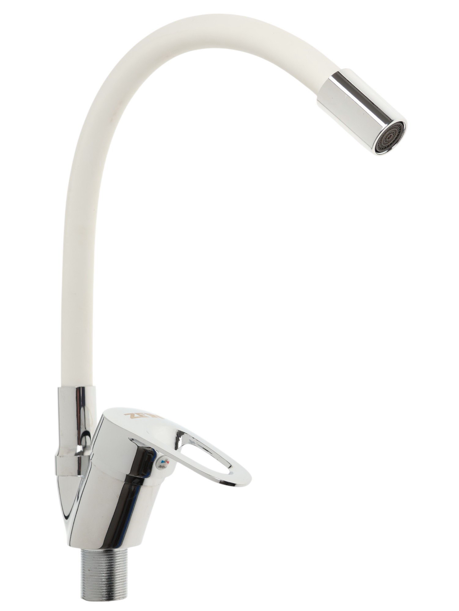 Смеситель для кухни Z2110, однорычажный, гибкий излив, картридж 40 мм, белый/хром, 15.5x30.5x4.5 см., ZEIN, Китай