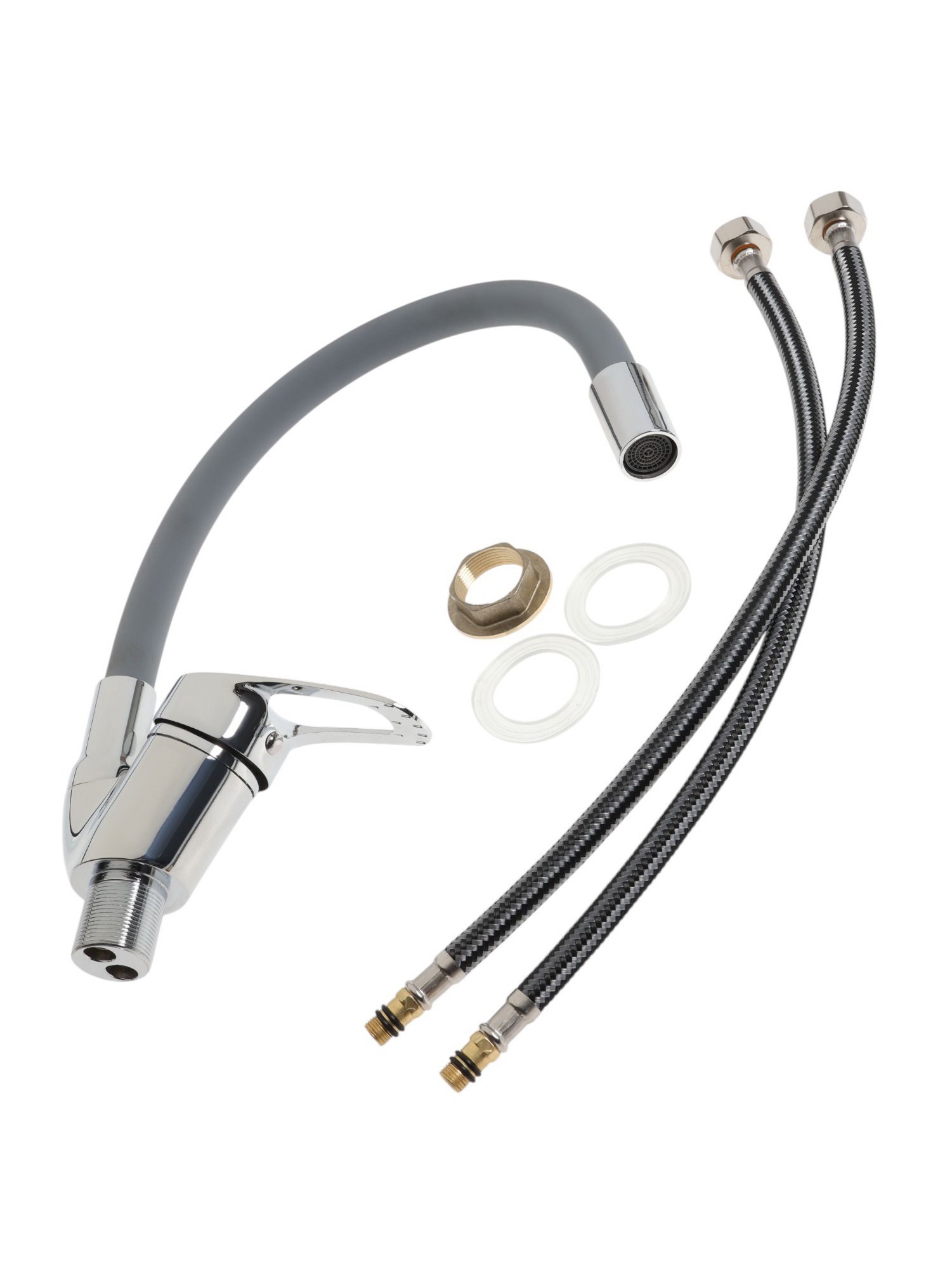 Смеситель для кухни Z2115, однорычажный, гибкий излив, картридж 40 мм, серый/хром, 15.5x30.5x4.5 см., ZEIN, Китай