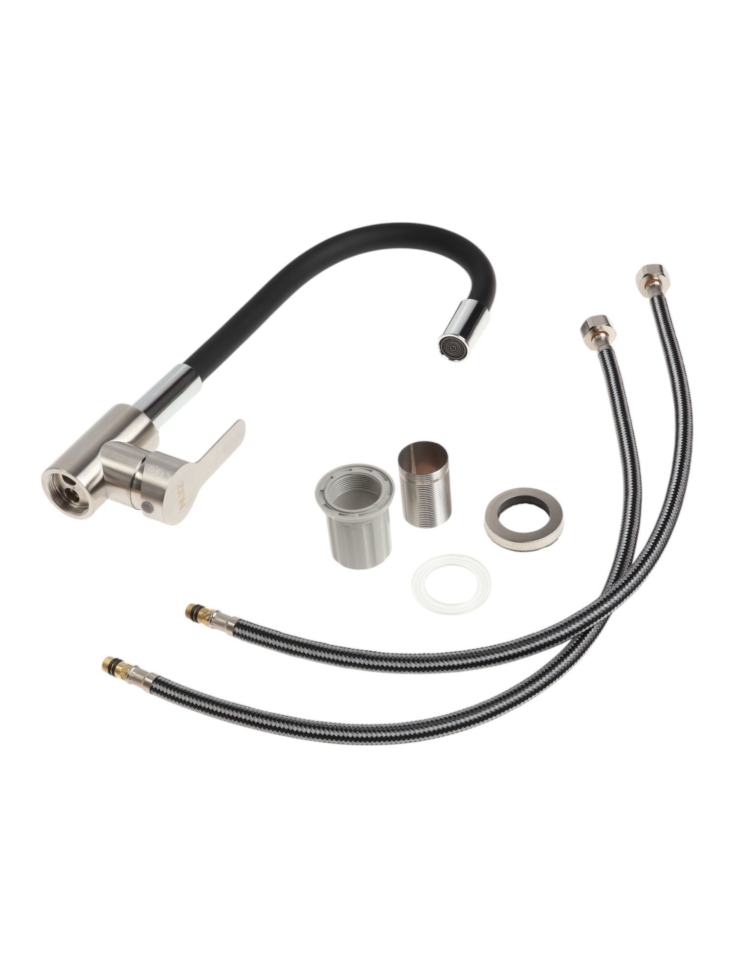 Смеситель для кухни Z2751, гибкий излив, картридж 35 мм, нерж. сталь, черный/сатин, 15.5x30.5x4.5 см., ZEIN, Китай