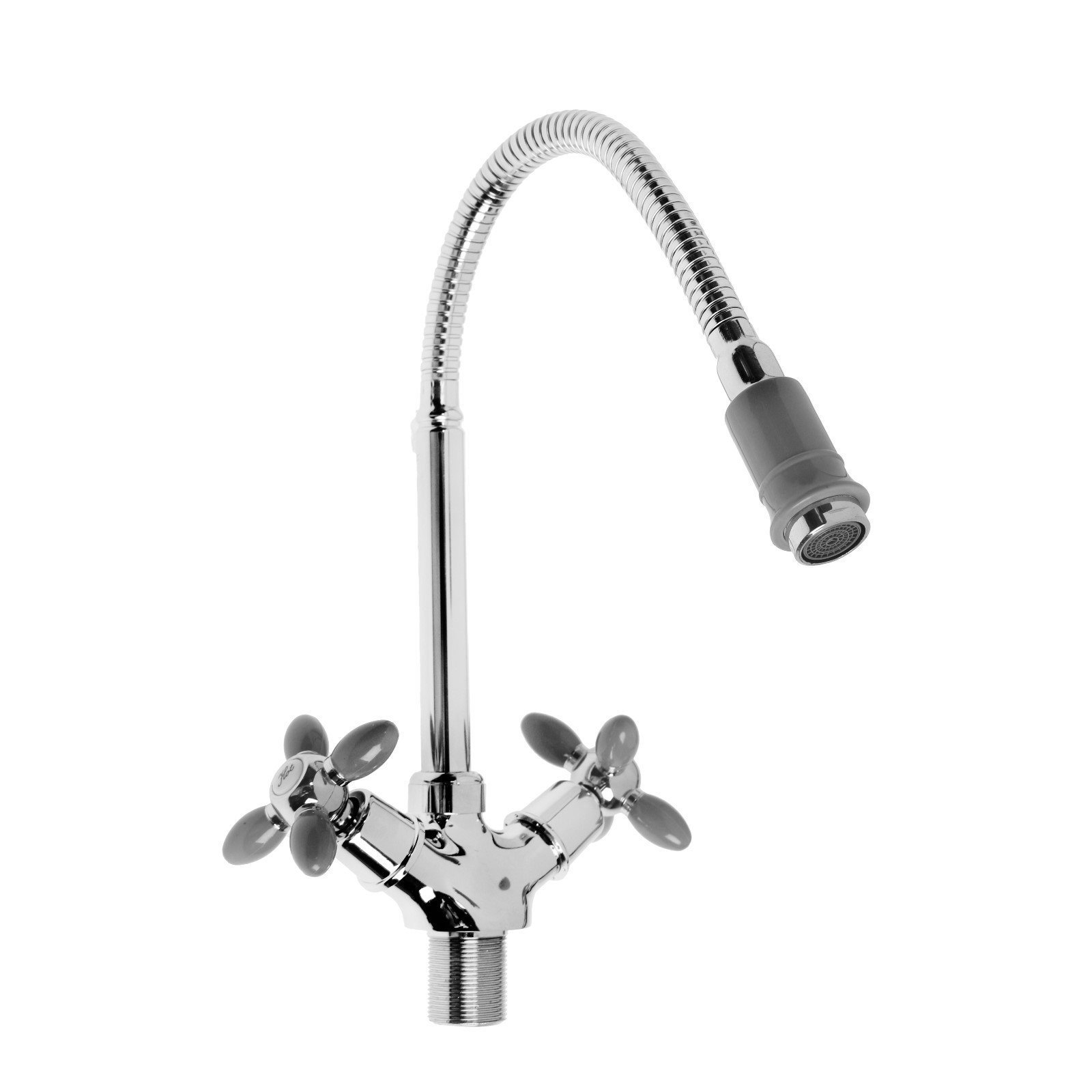 Смеситель для кухни ZC2031, гибкий излив, кран-букса латунь 1/2", серый/хром, 15x33.5x6.3 см., ZEIN, Китай