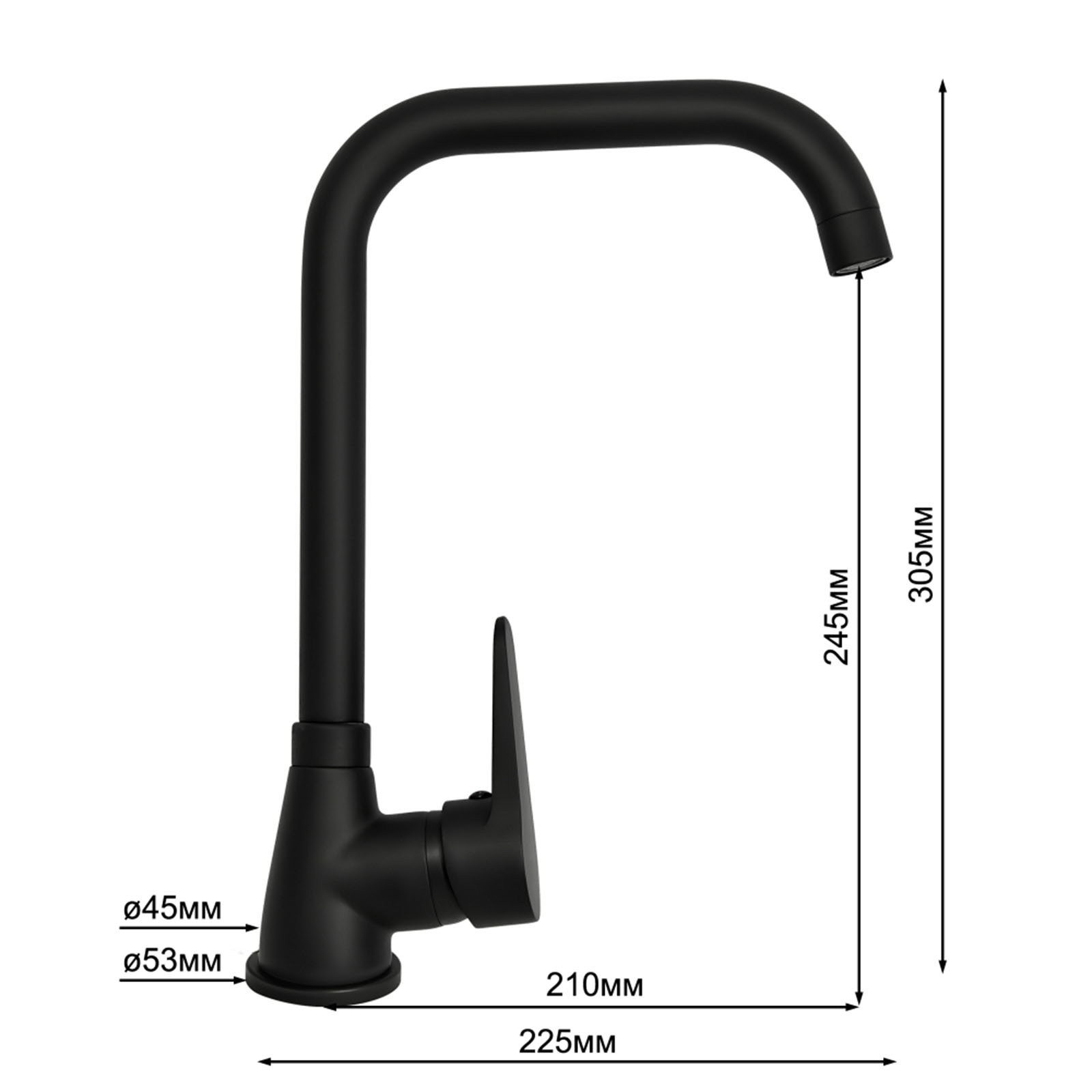 Смеситель для кухни 0402.157, однорычажный, высокий, черный, Juguni, Россия