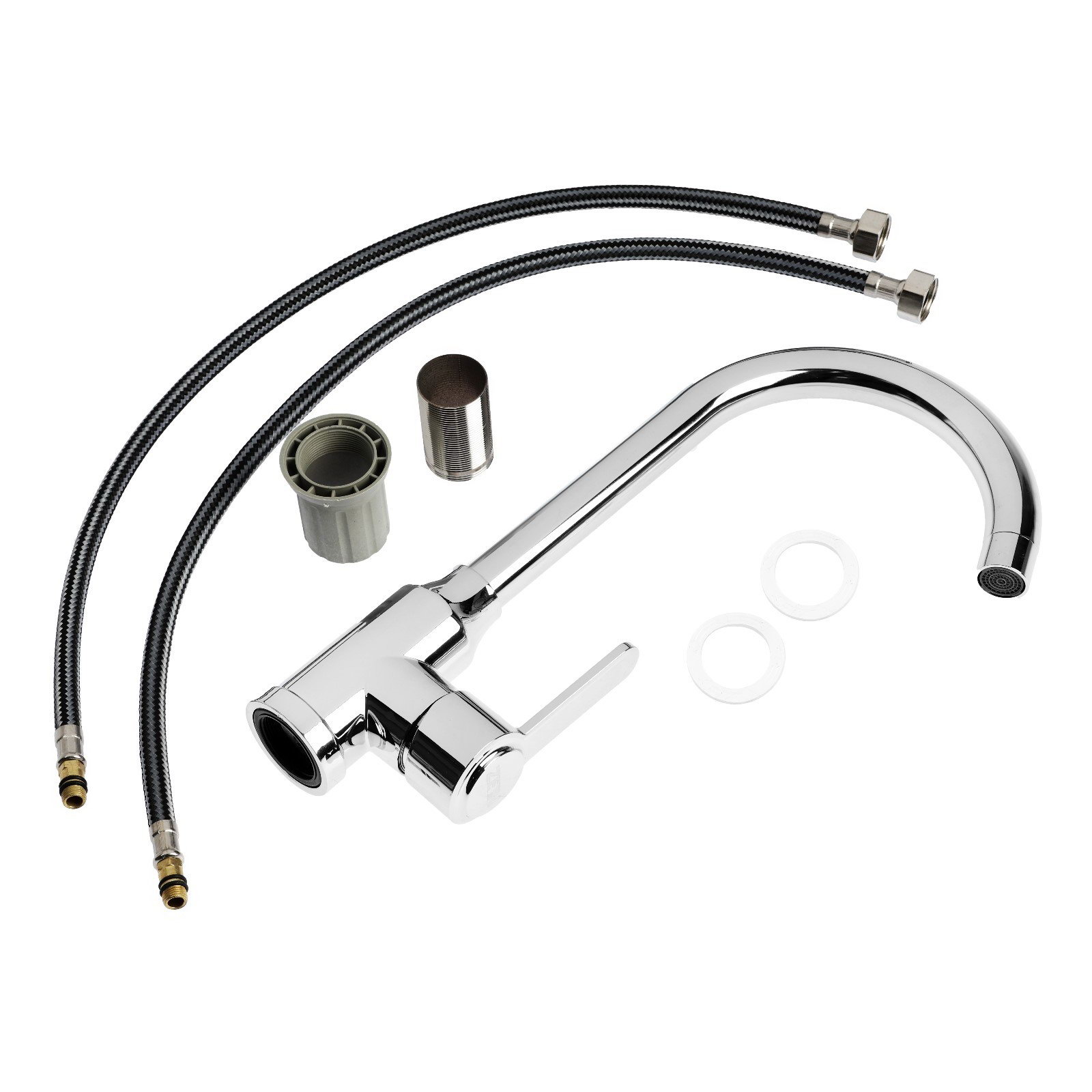 Смеситель для кухни Z3701, поворотный излив высотой 26 см, ABS-пластик, хром, 4.7x19x38 см., ZEIN, Китай