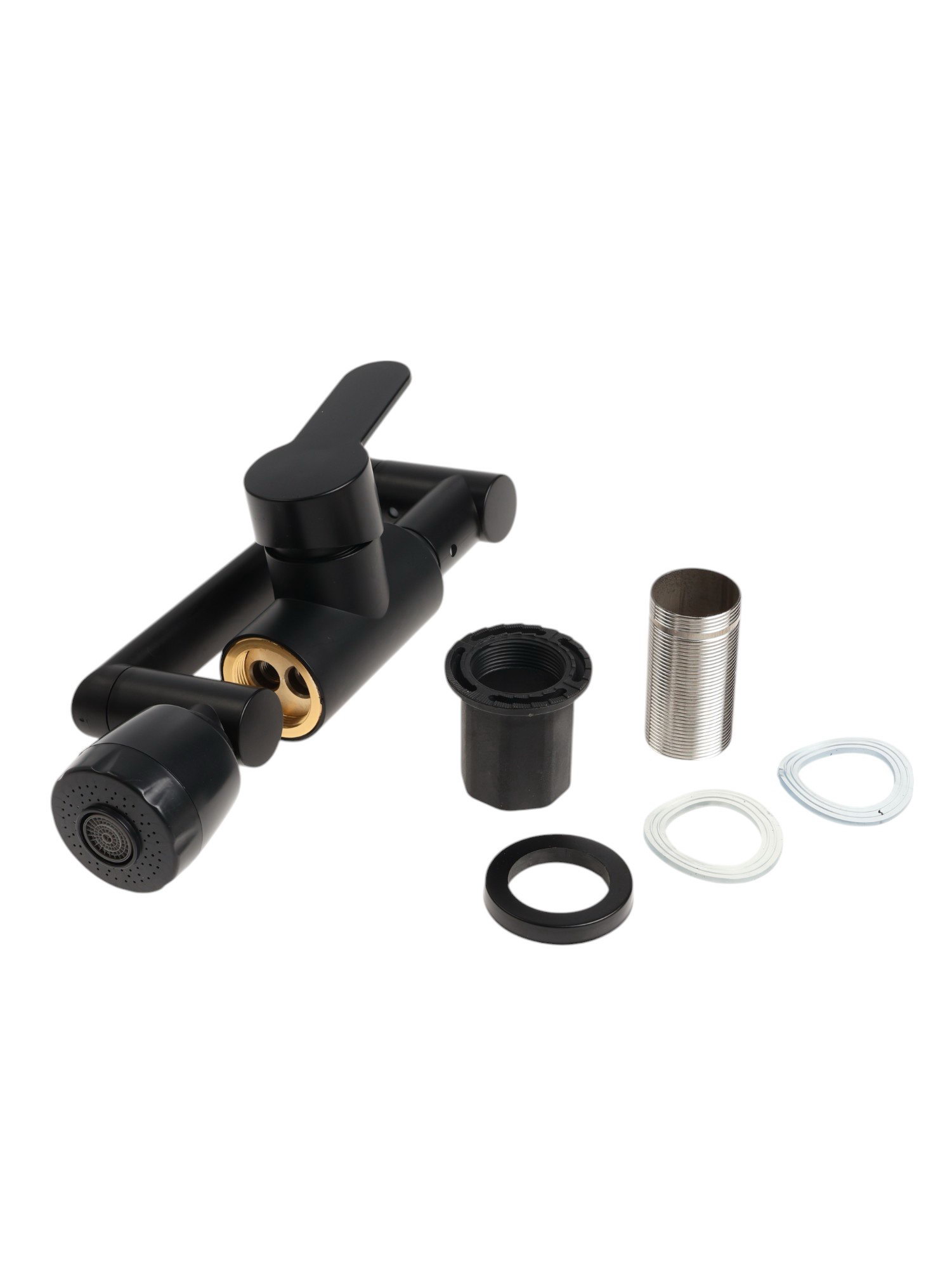 Смеситель для кухни Z3705, регулируемый излив высотой 25 см, аэратор 2 режима, черный, 10x10x22 см., ZEIN, Китай