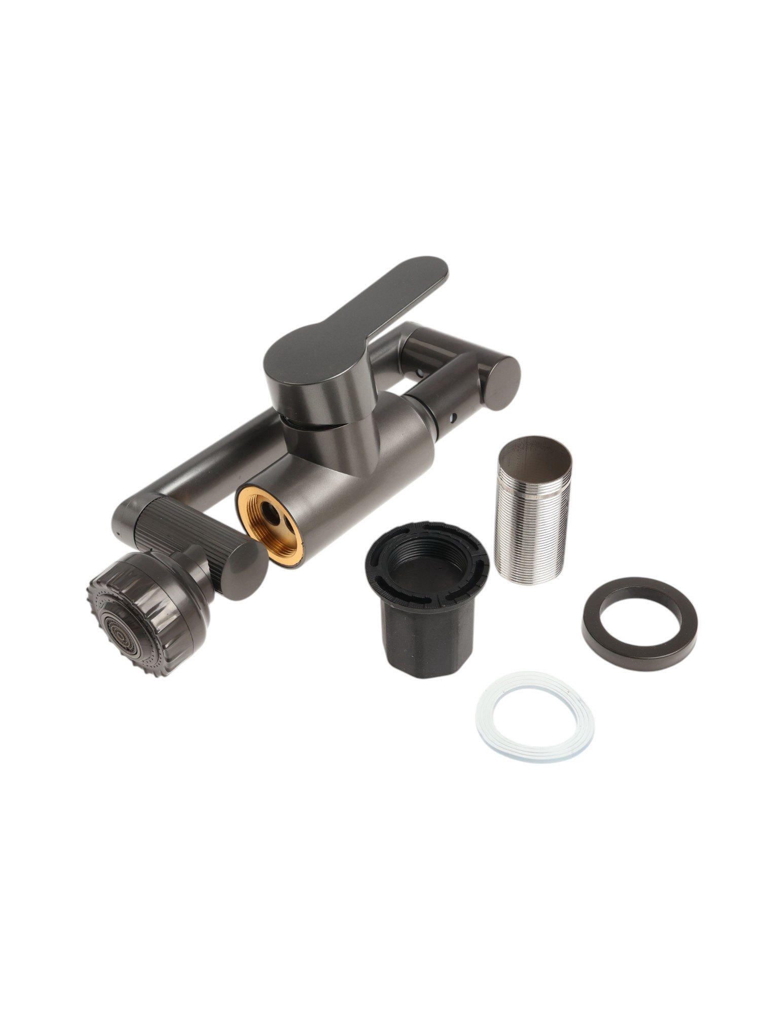 Смеситель для кухни Z3706, регулируемый излив высотой 25 см, аэратор 2 режима, графит, 10x10x22 см., ZEIN, Китай