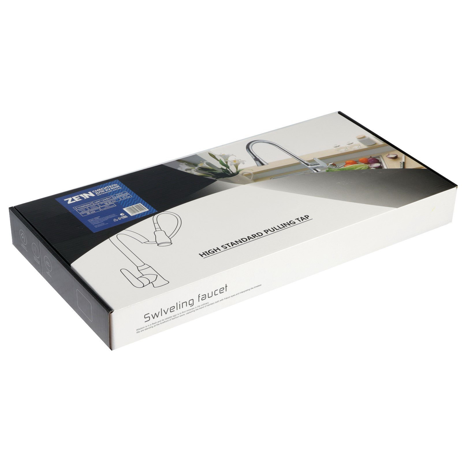 Смеситель для кухни Z3782, экран температуры, вытяжной излив, высота 18-25 см, 2 режима, 5.5x29x26 см., ZEIN, Китай