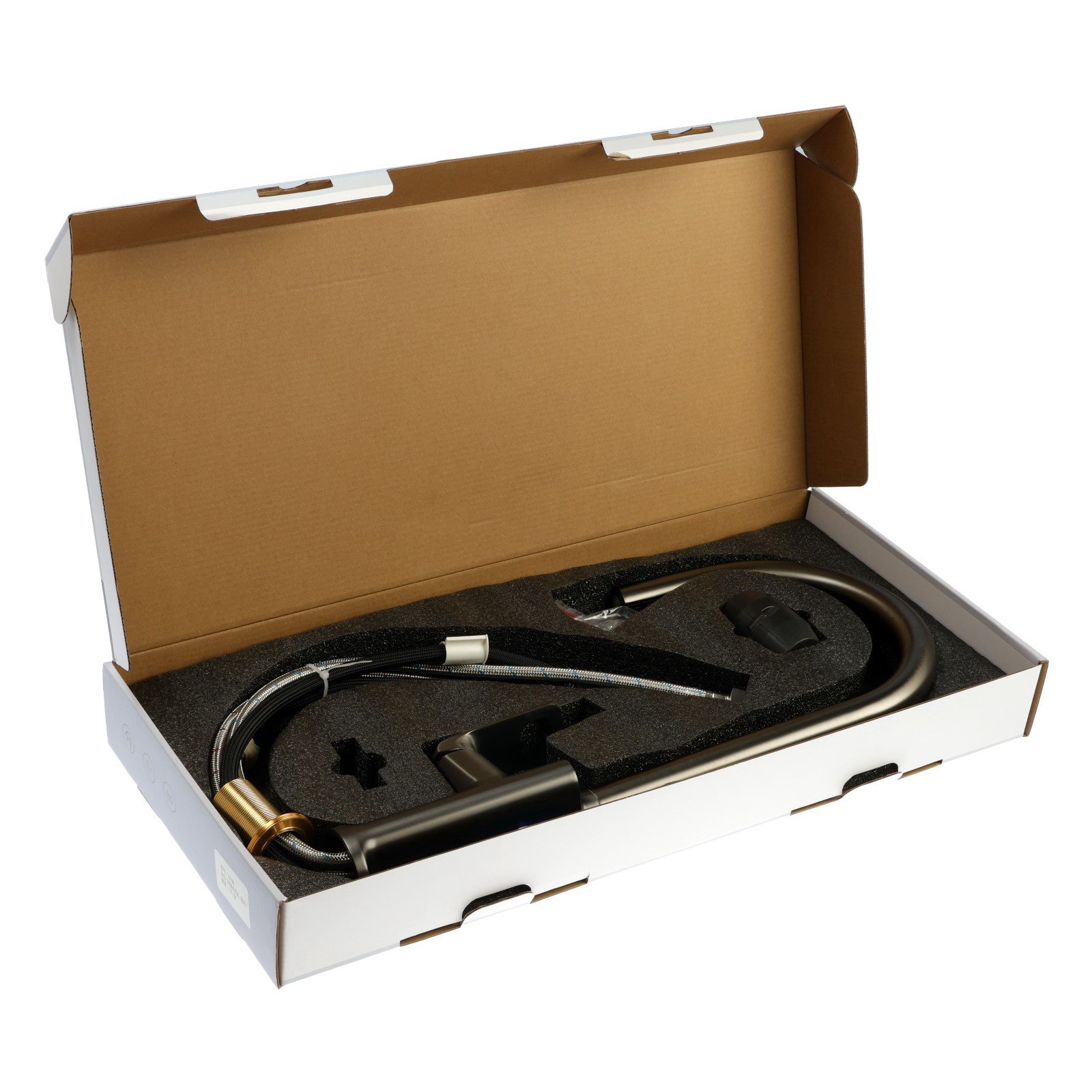 Смеситель для кухни Z3785, однорычажный, вытяжной излив, аэратор 2 режима, графит, 6x26.5x56.5 см., ZEIN, Китай