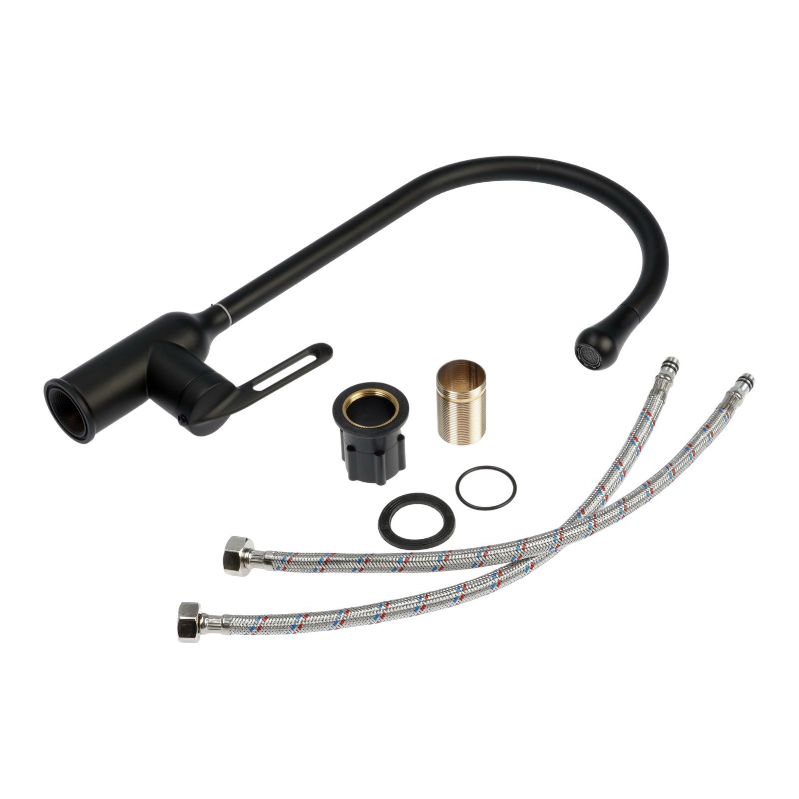 Смеситель для кухни Z3743, "Капелька", однорычажный, высота излива 26 см, черный, 4.5x22x46 см., ZEIN, Китай