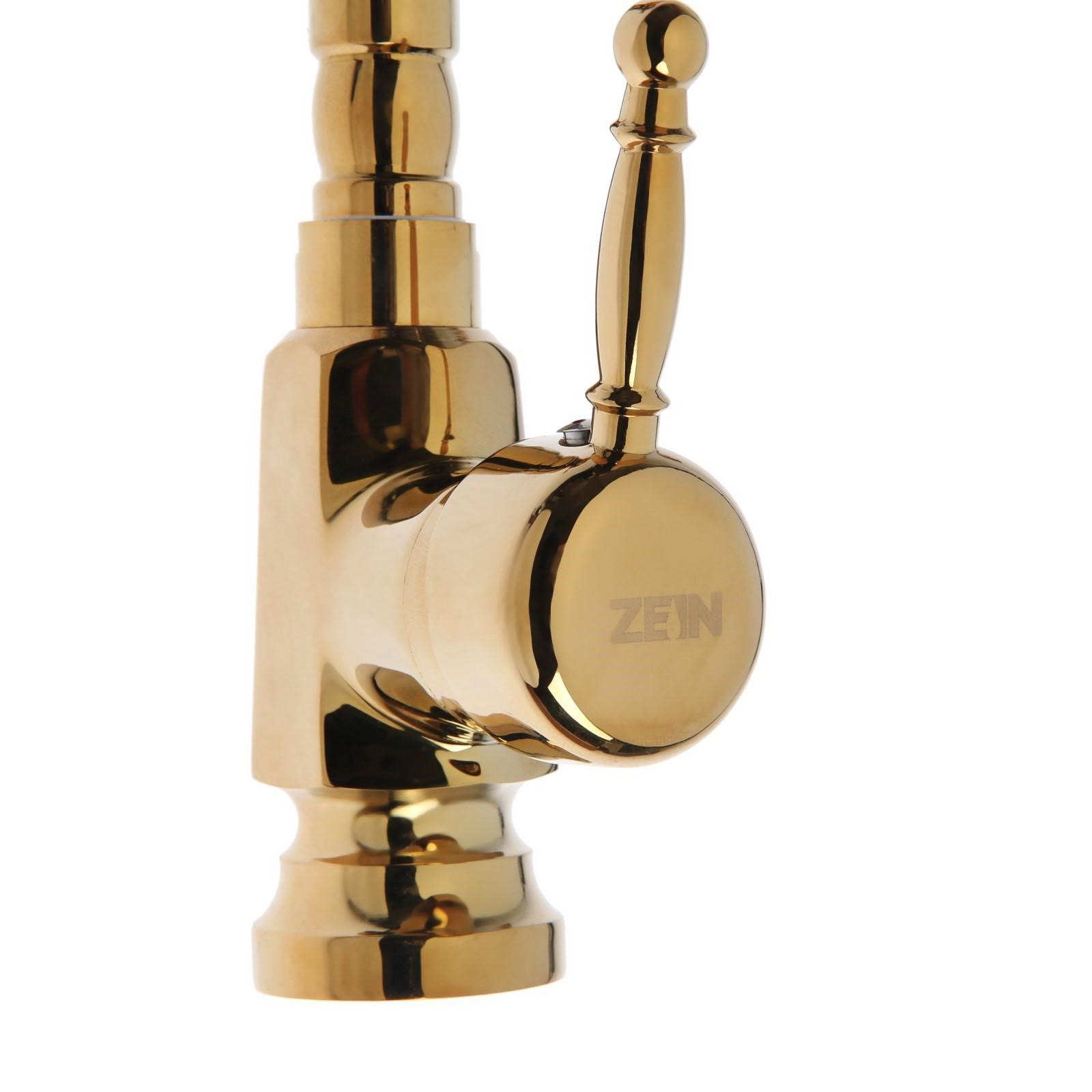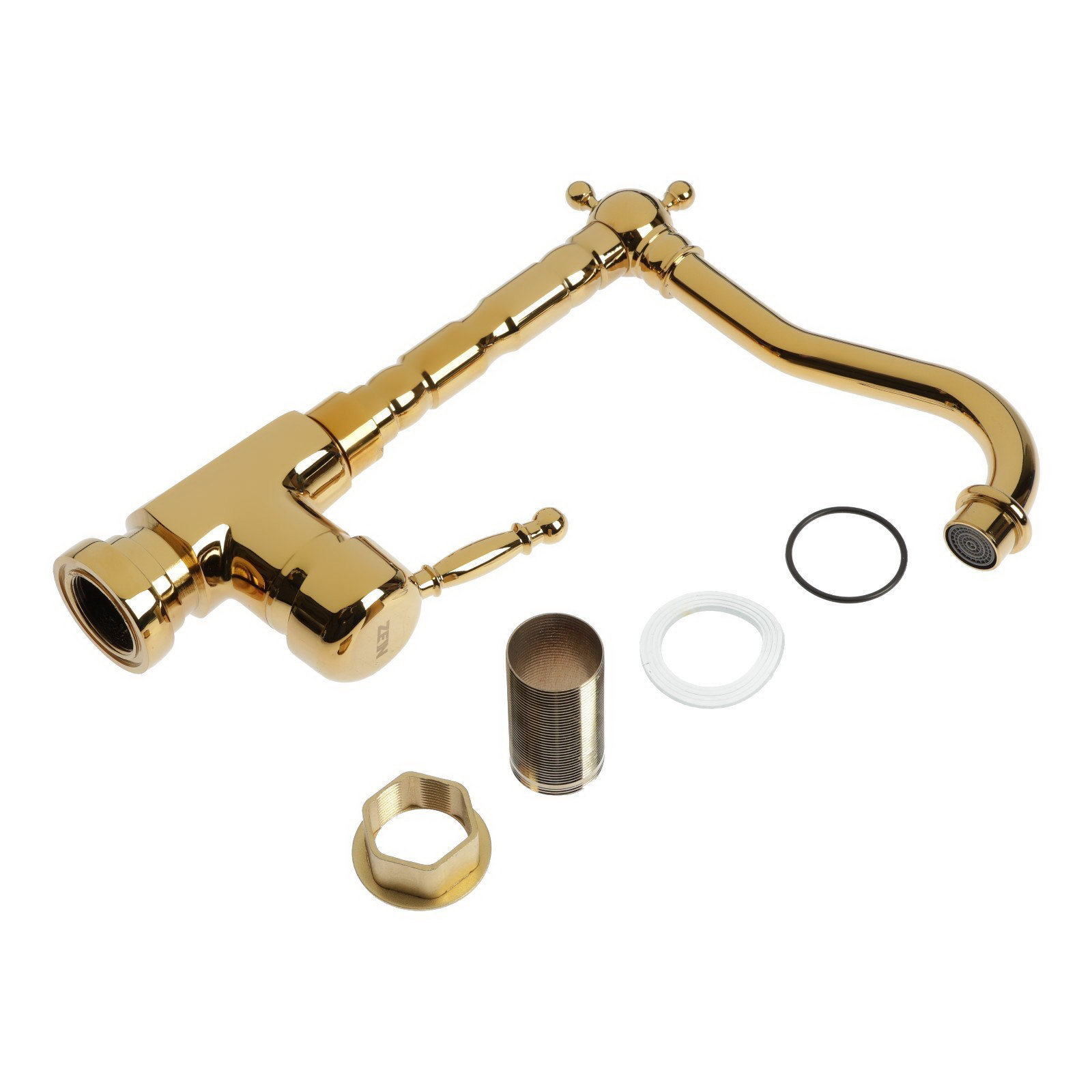 Смеситель для раковины Ретро, высокий излив, без подводки, латунь, цвет золото, 23x35x8 см., ZEIN, Китай