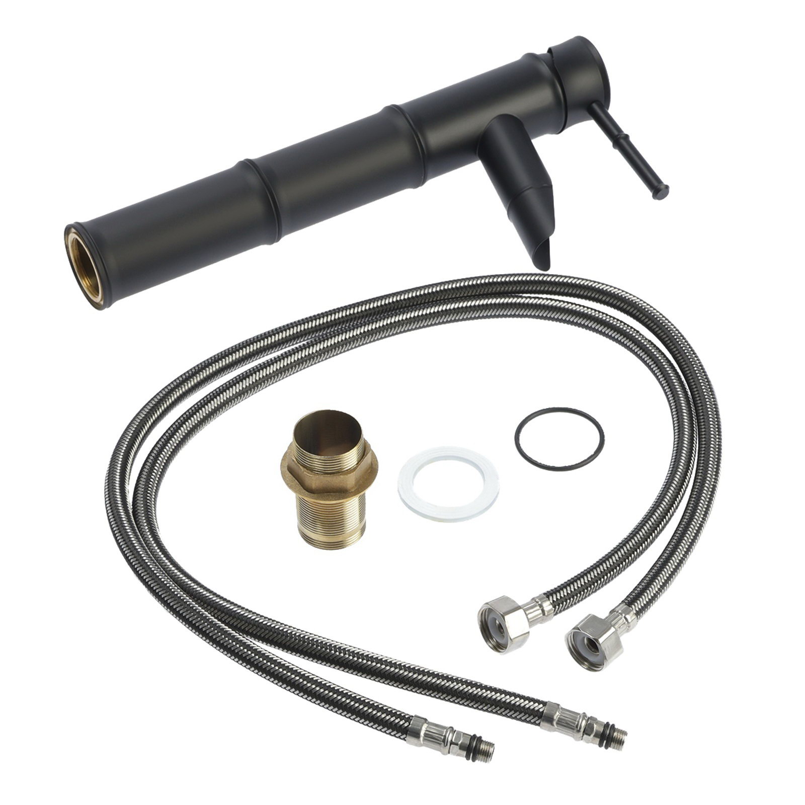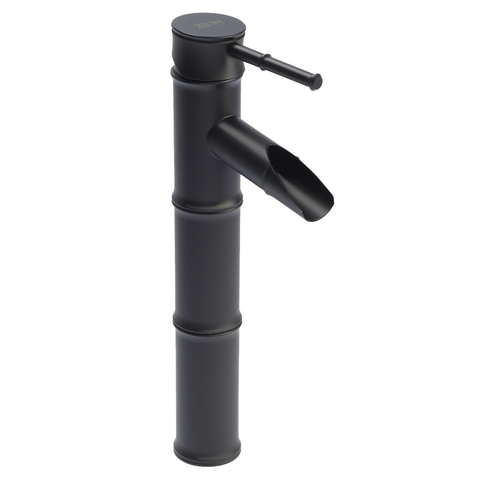 Смеситель для раковины Бамбук, водопад, латунь, черный, 15x38x7 см., ZEIN, Китай