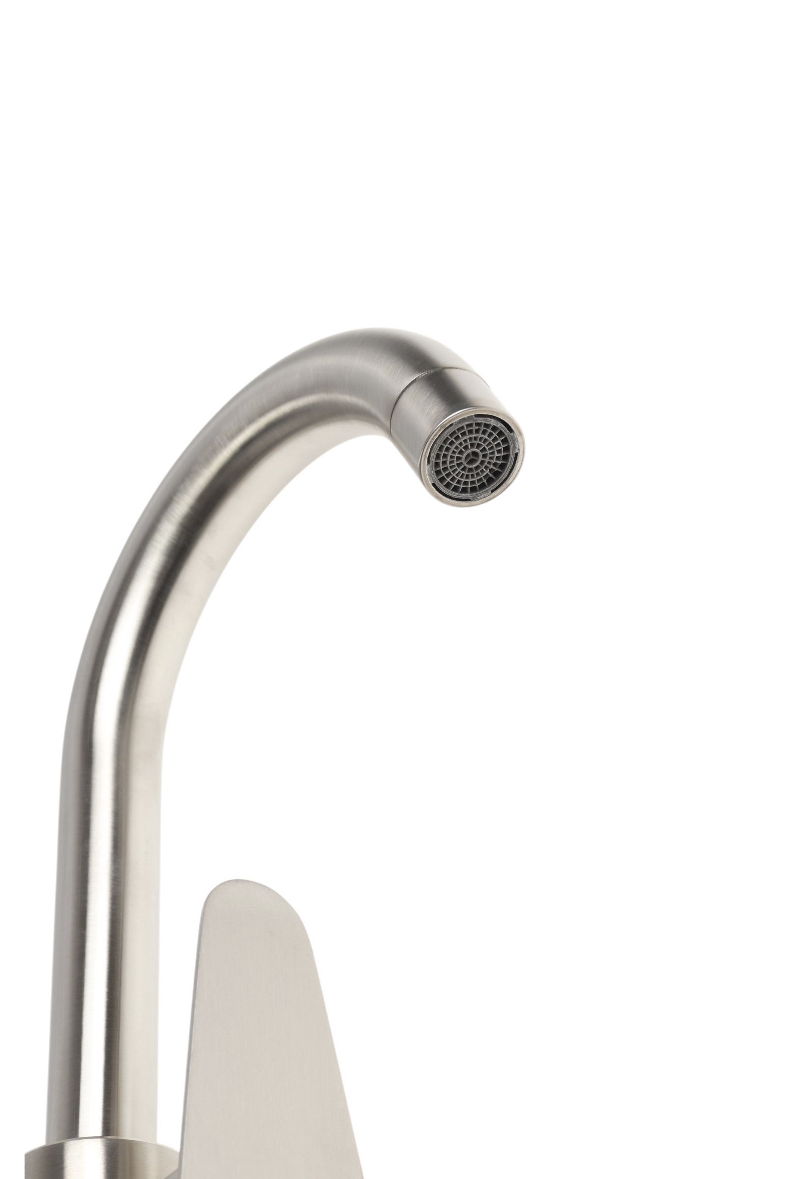 Смеситель для раковины Z2392, картридж 40 мм, короткий излив, нержавеющая сталь, сатин, 14.5x25x9 см., ZEIN, Китай