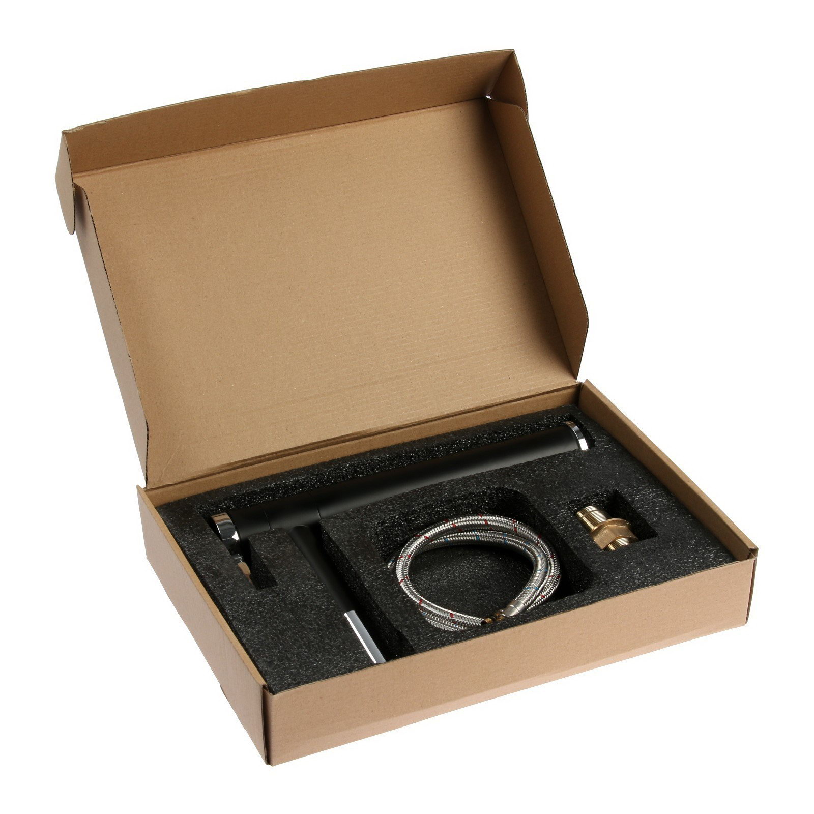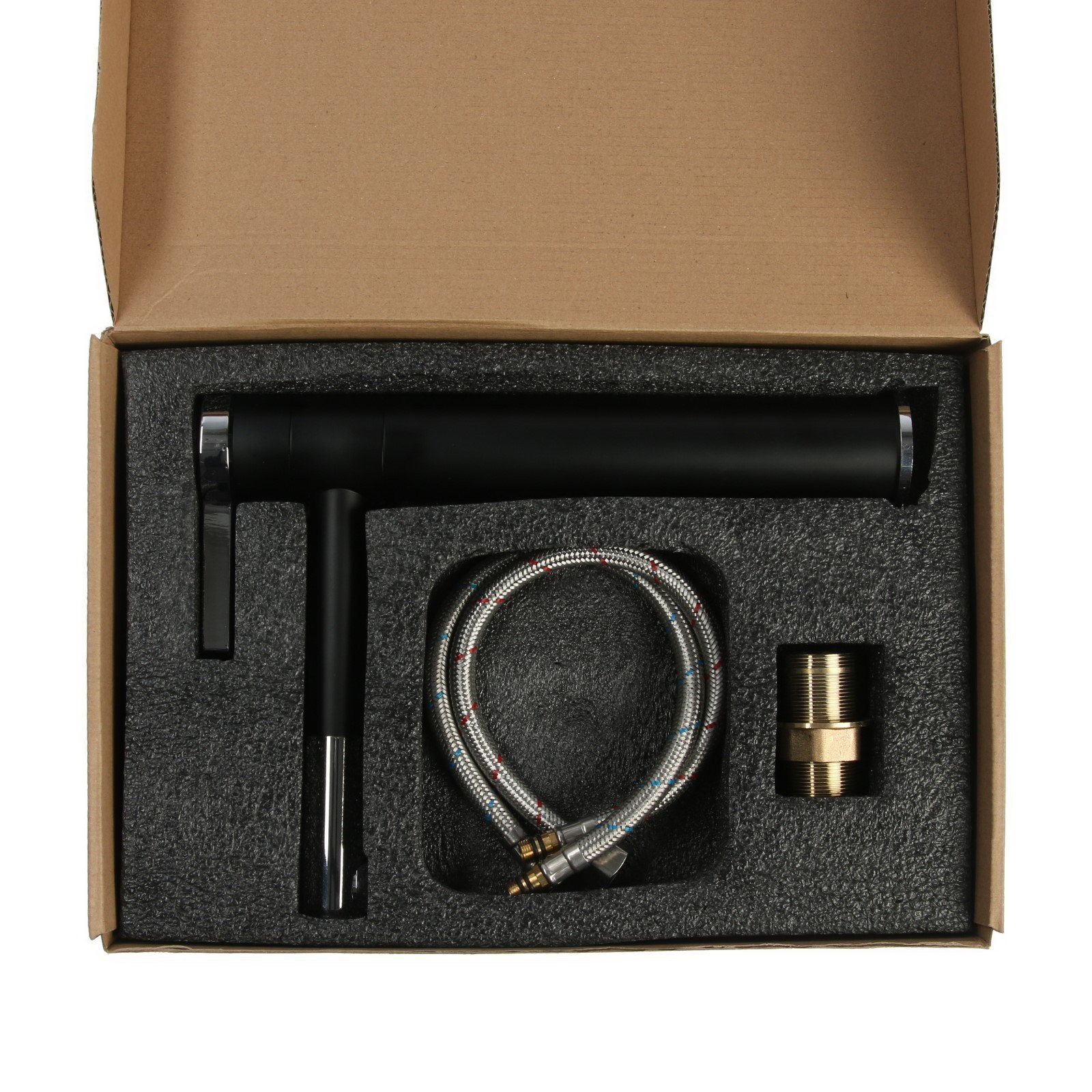 Тип излива: Высокий, Поворотный излив Цвет: Хромированный, Чёрный Размер упаковки: 24 x 6.5 x 36.5 см. Интерьерный: Нет tnved: 8481801000 tnved: 8481801000 Гарантийный срок, мес.: 12 Вид установки: На раковину и столешницу Диаметр картриджа: 35 Материал корпуса: Латунь Тип управления: Рычажный Длина излива, мм: 180 Смеситель для раковины ZEIN ZF-013 выполнен из прочной латуни, что обеспечивает надежность и долговечность в использовании. Рычажный тип управления позволяет плавно и точно управлять потоком и температурой воды, обеспечивая комфорт во время использования. Черное и хромированное покрытие добавляет смесителю привлекательный вид, делая его подходящим для различных интерьерных стилей. Этот смеситель легко устанавливается и подходит для большинства стандартных раковин, что делает его практичным выбором для любого дома. | ||