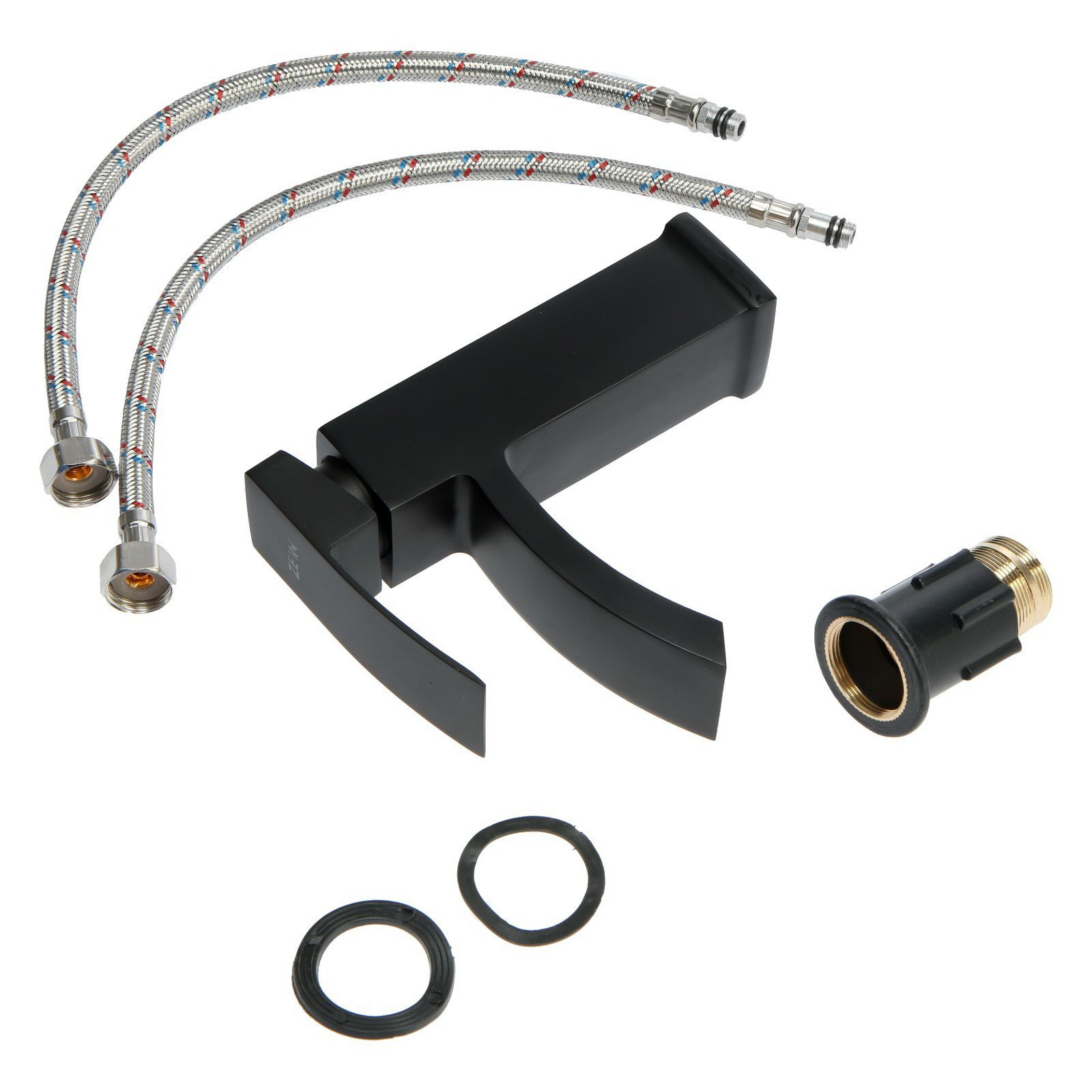 Смеситель для раковины Z2738, квадратный, дизайнерский, картридж керамика 35 мм, черный, 10x20x6 см., ZEIN, Китай