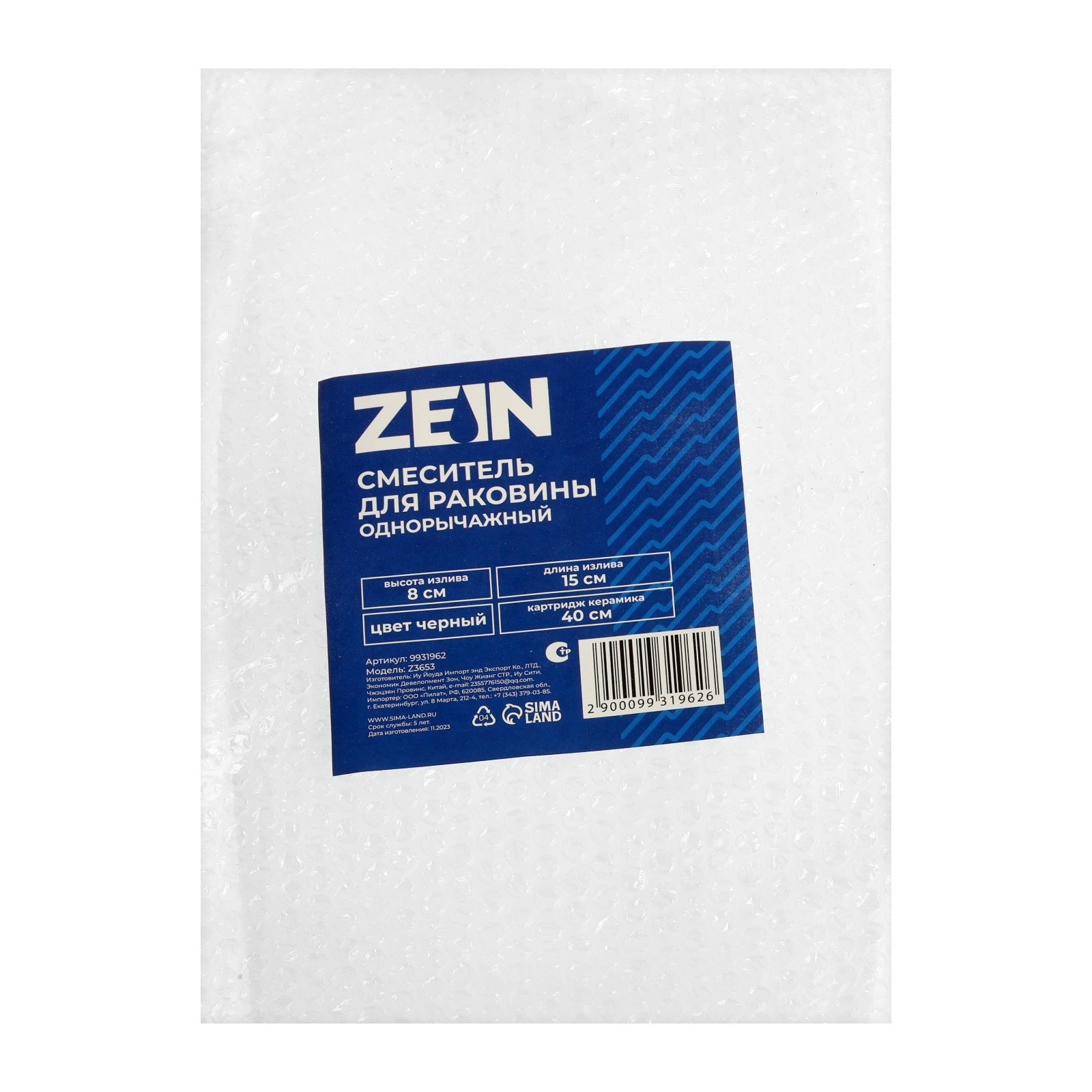Смеситель для раковины Z3653, однорычажный, высота излива 8 см, ABS-пластик, черный, 5.5x16.5x24.4 см., ZEIN, Китай