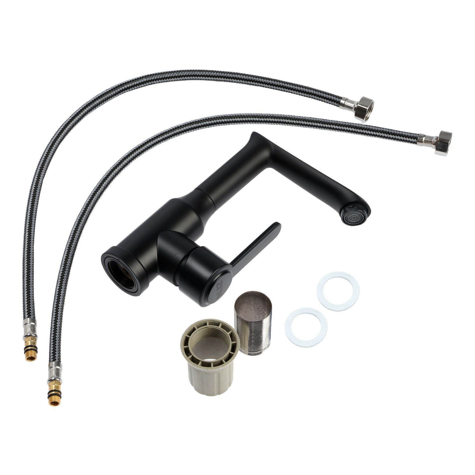 Смеситель для раковины Z3696, поворотный излив высотой 18 см, ABS-пластик, черный, 4.7x14x25.5 см., ZEIN, Китай