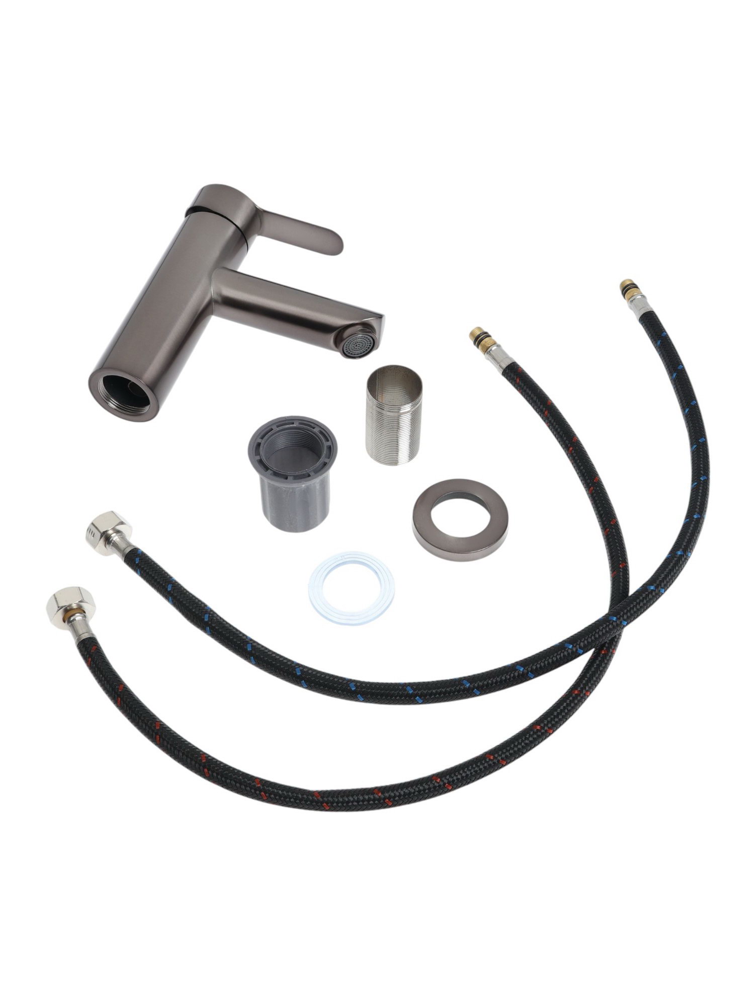 Смеситель для раковины Z3759, однорычажный, высота излива 9 см, графит, 5x14.5x20.5 см., ZEIN, Китай