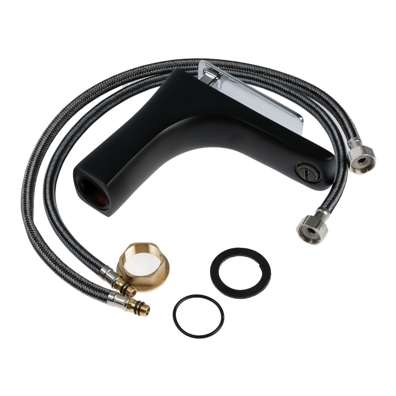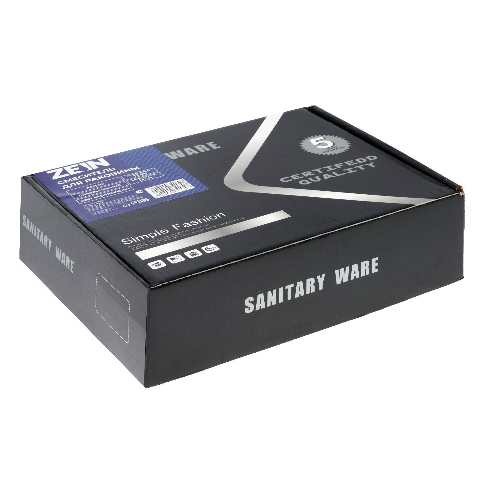 Смеситель для раковины Z3871, однорычажный, высота излива 13 см, латунь, черный/хром, 4.5x16.5x22 см., ZEIN, Китай
