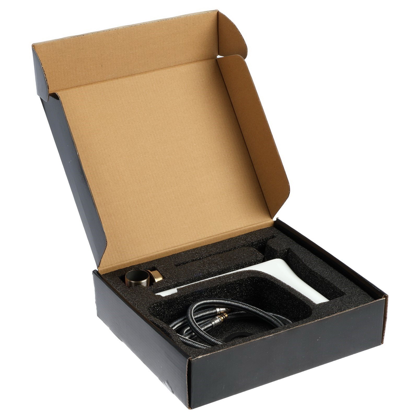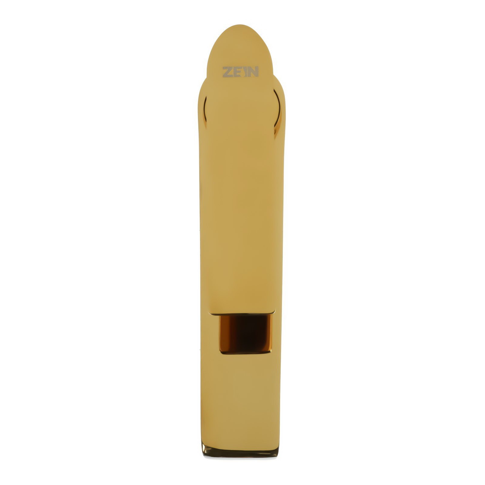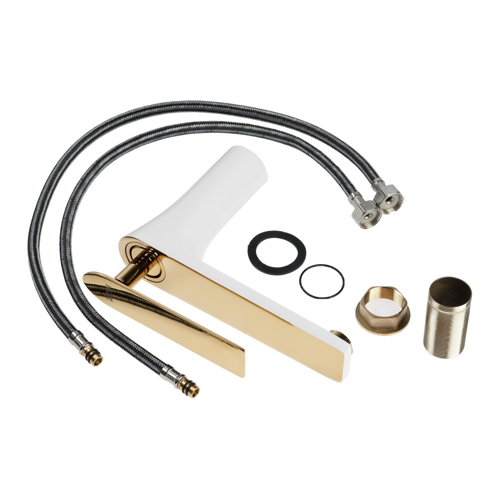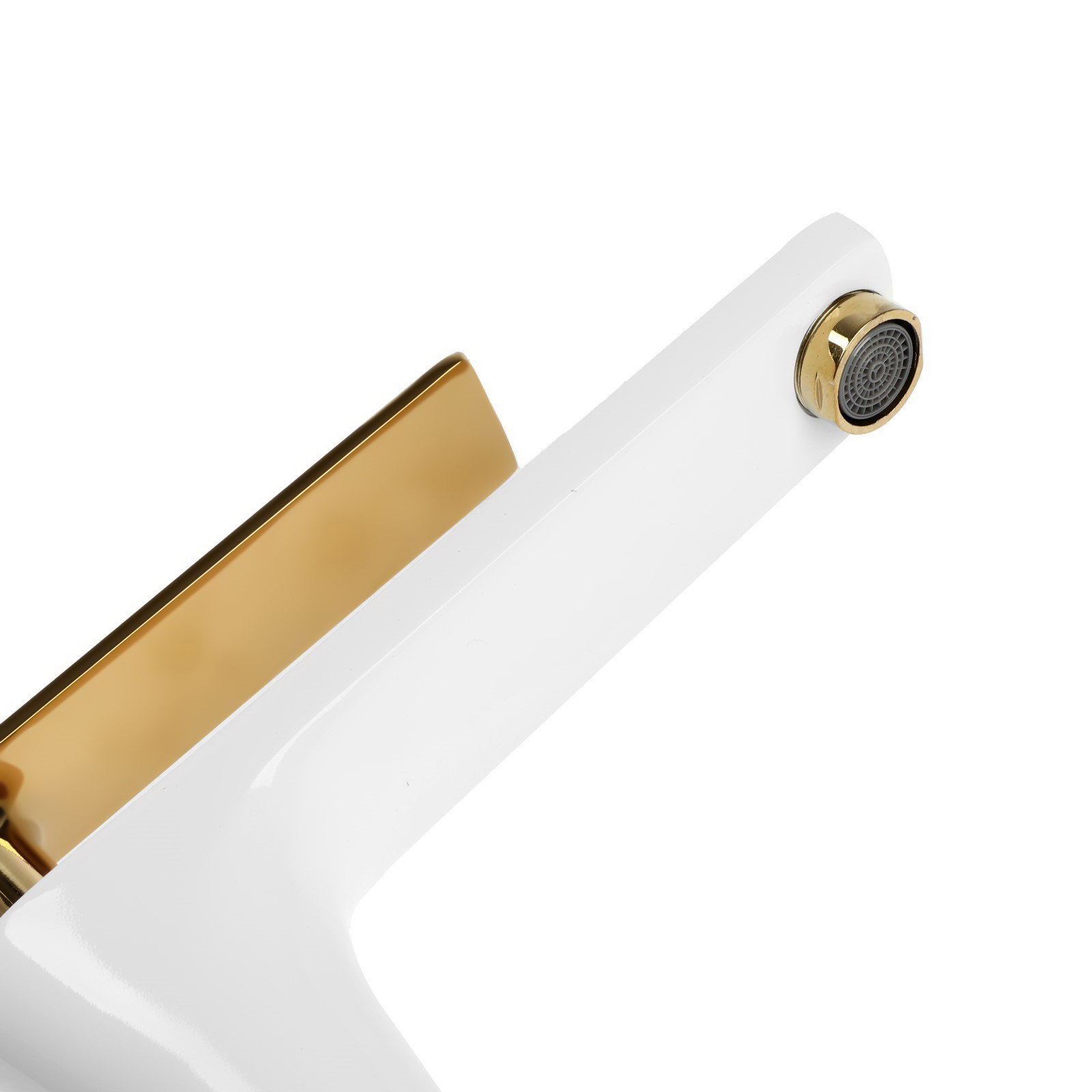 Смеситель для раковины Z3875, однорычажный, высота излива 12 см, латунь, белый/gold=, 4.5x21x23.5 см., ZEIN, Китай
