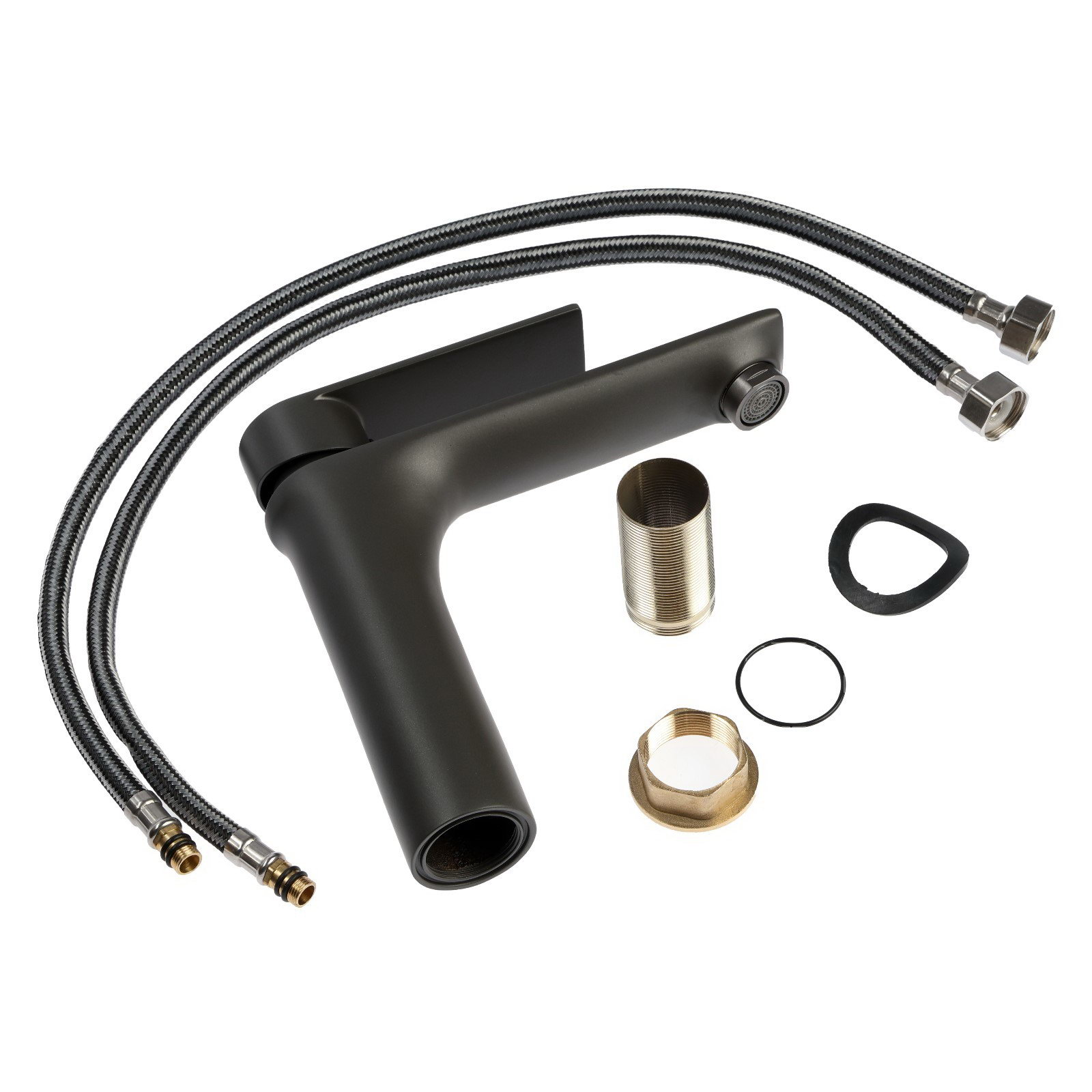 Смеситель для раковины Z3876, однорычажный, высота излива 14 см, латунь, графит, 4.5x19.6x24 см., ZEIN, Китай