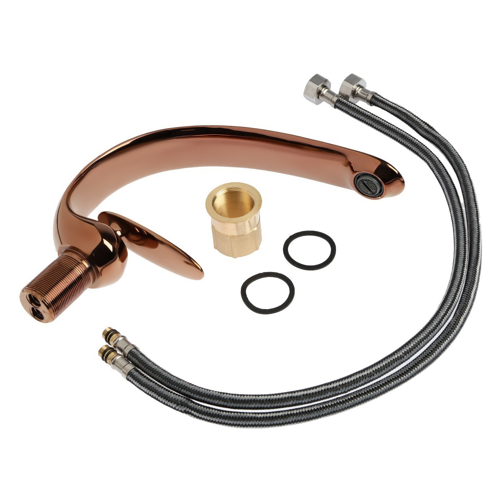 Смеситель для раковины Z3880, однорычажный, интерьерный, высота 18 см, латунь, rose gold=, 6x22x25 см., ZEIN, Китай