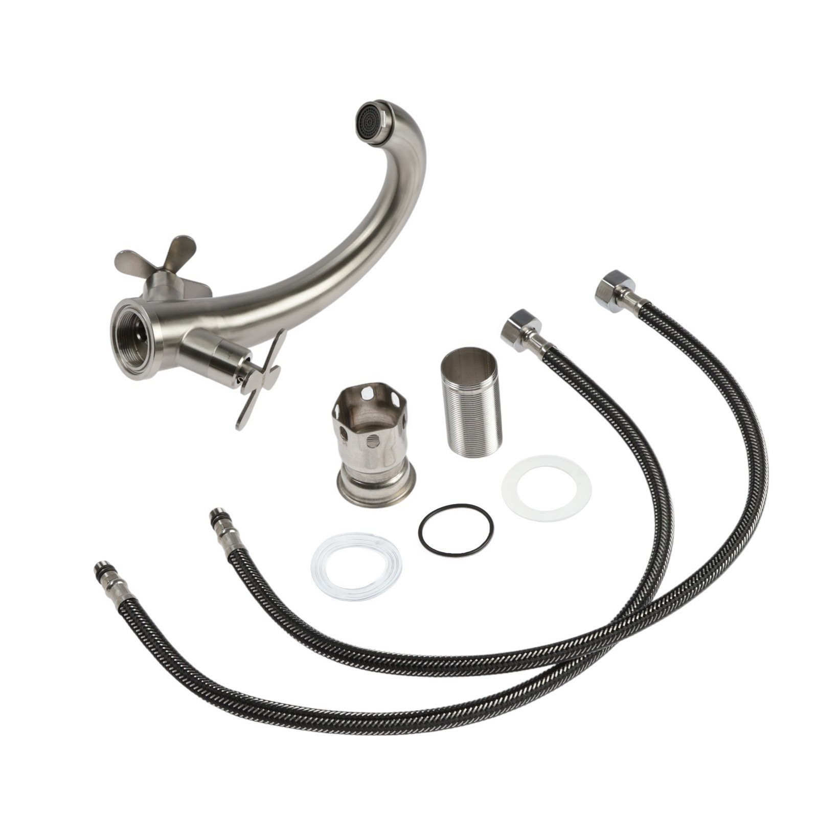 Смеситель для раковины Z3728, двухвентильный, длина излива 12.5 см, сатин, 15x17.5x22.5 см., ZEIN, Китай