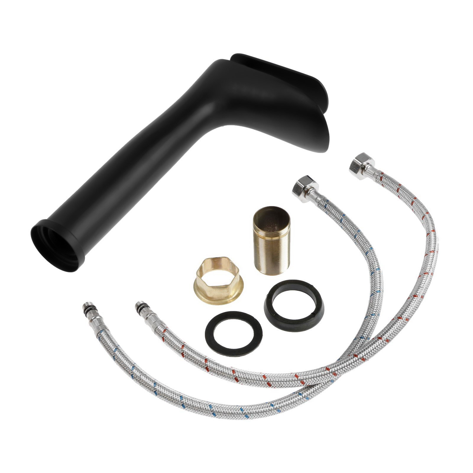 Смеситель для раковины Z3819, однорычажный, каскадный излив высотой 22 см, черный, 7x16x34 см., ZEIN, Китай