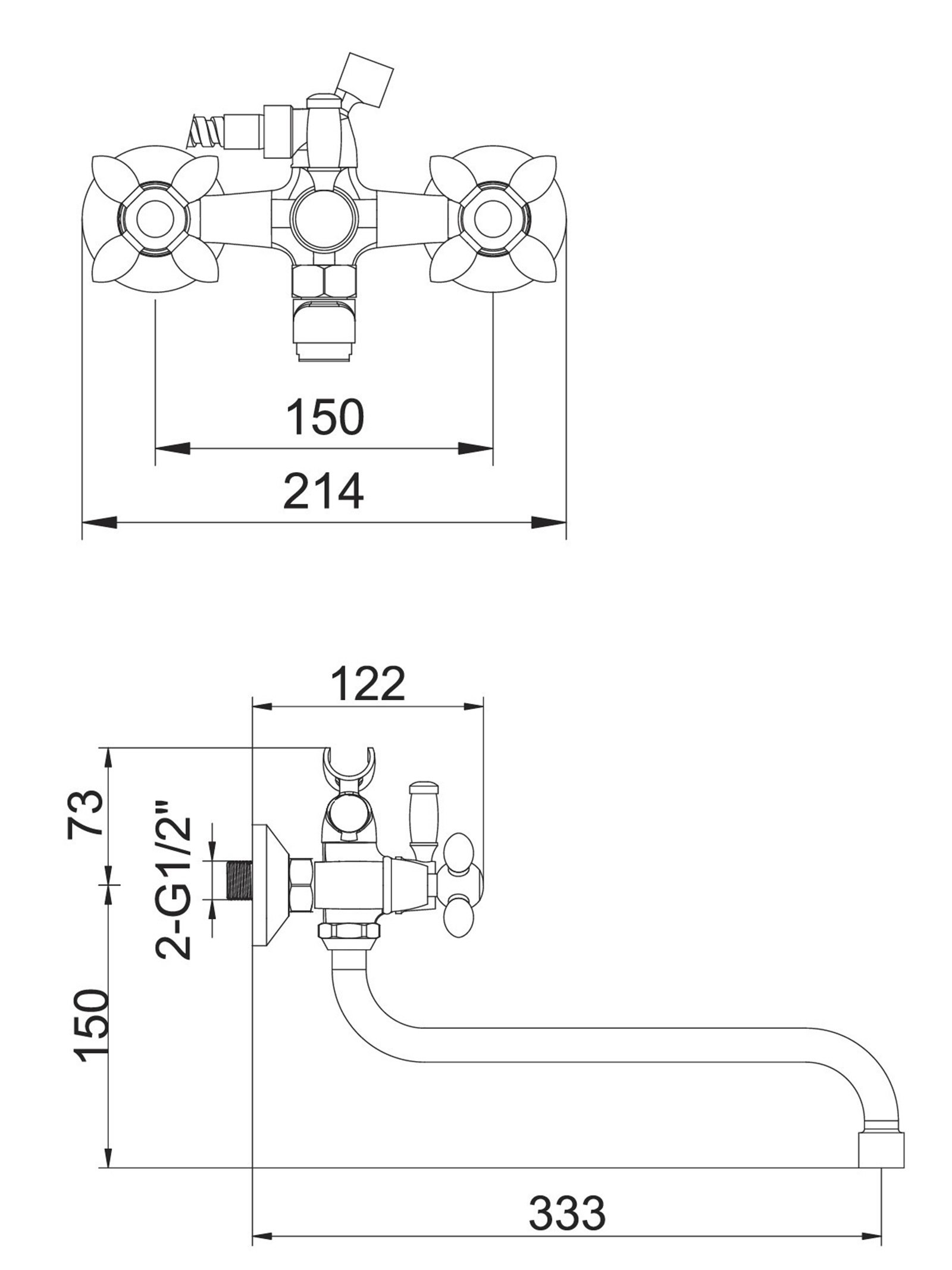 Смеситель для ванны A7182G, двухрычажный, белый/хром, Accoona, Китай