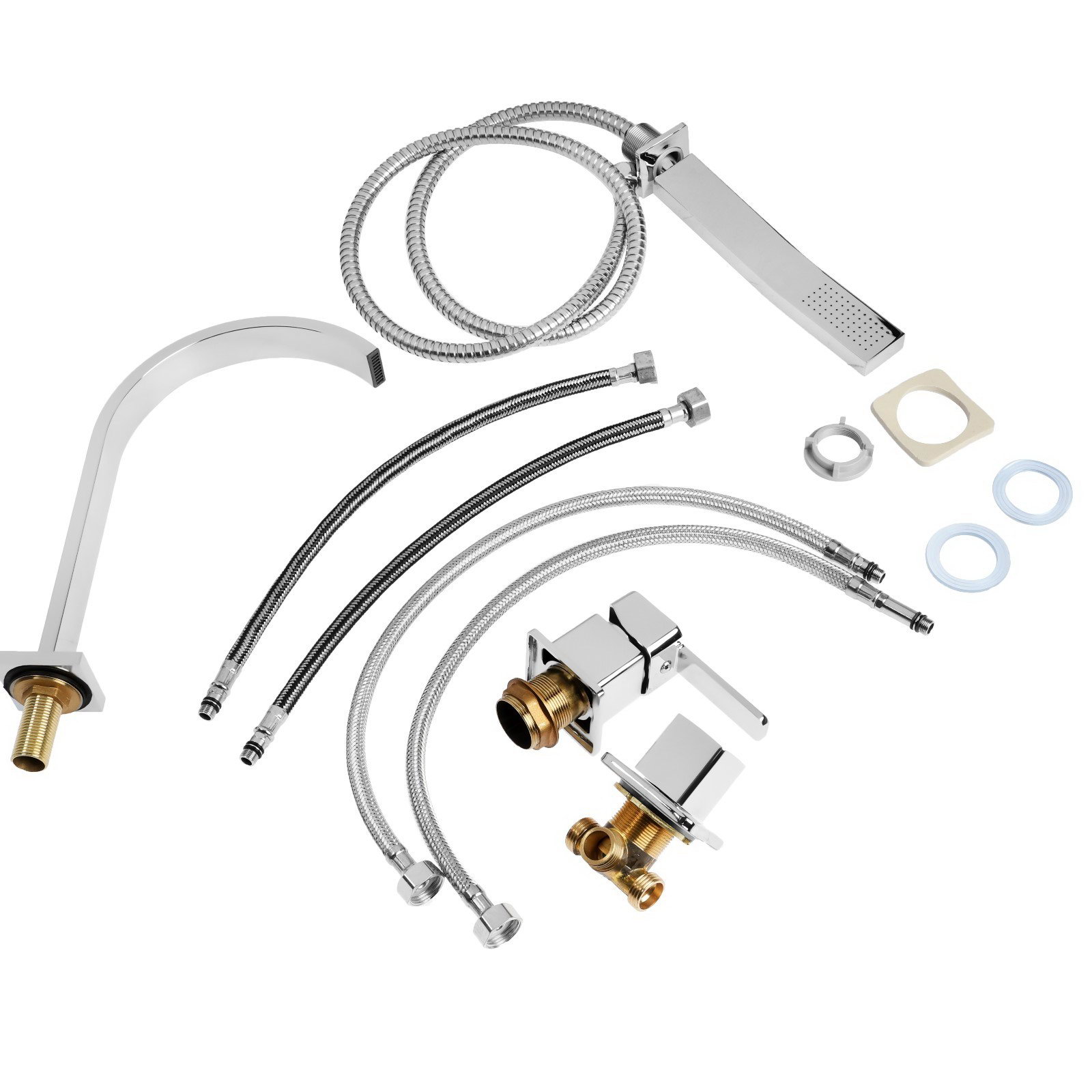 Смеситель на борт ванны NB-3, на четыре отверстия, комплект, высокий излив, хром, 19x35.5x8 см., ZEIN, Китай