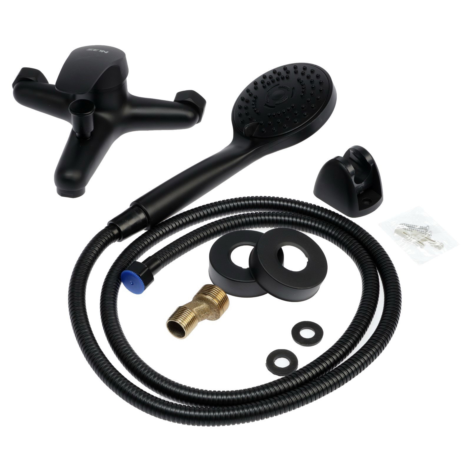 Смеситель для ванны Z3838, однорычажный, душевой набор, лейка 5 режимов, черный, 23x16x11 см., ZEIN, Китай