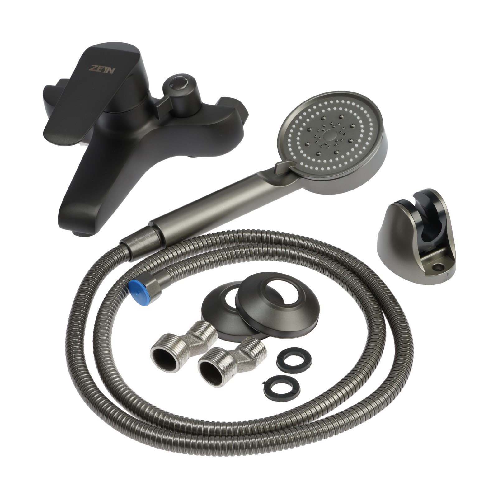 Смеситель для ванны Z3856, однорычажный, душевой набор, лейка 5 режимов, графит, 23x11x17 см., ZEIN, Китай