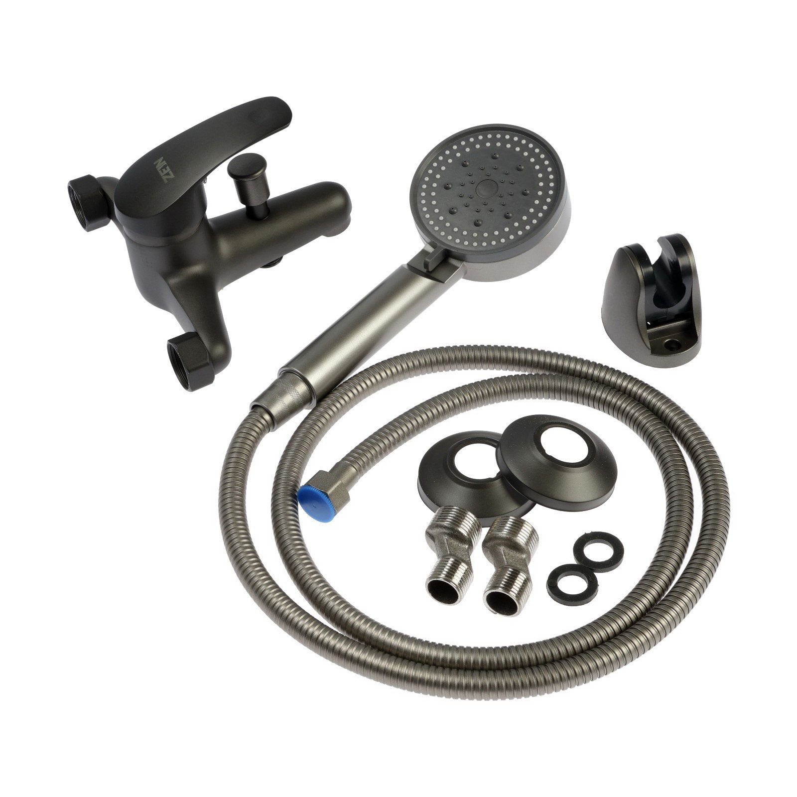 Смеситель для ванны Z3839, однорычажный, душевой набор, лейка 5 режимов, графит, 23x16x11 см., ZEIN, Китай