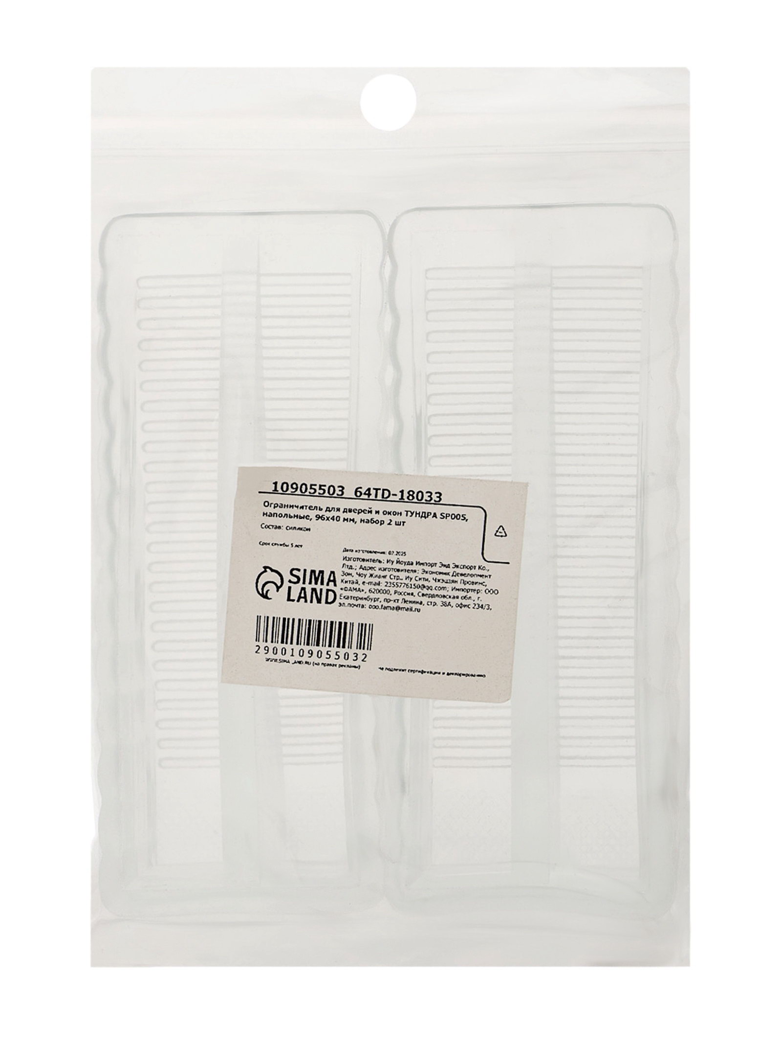 Ограничитель для дверей и окон SP005, напольные, 96x40 мм, набор 2 шт., 9.6x4x2.9 см., ТУНДРА, Китай
