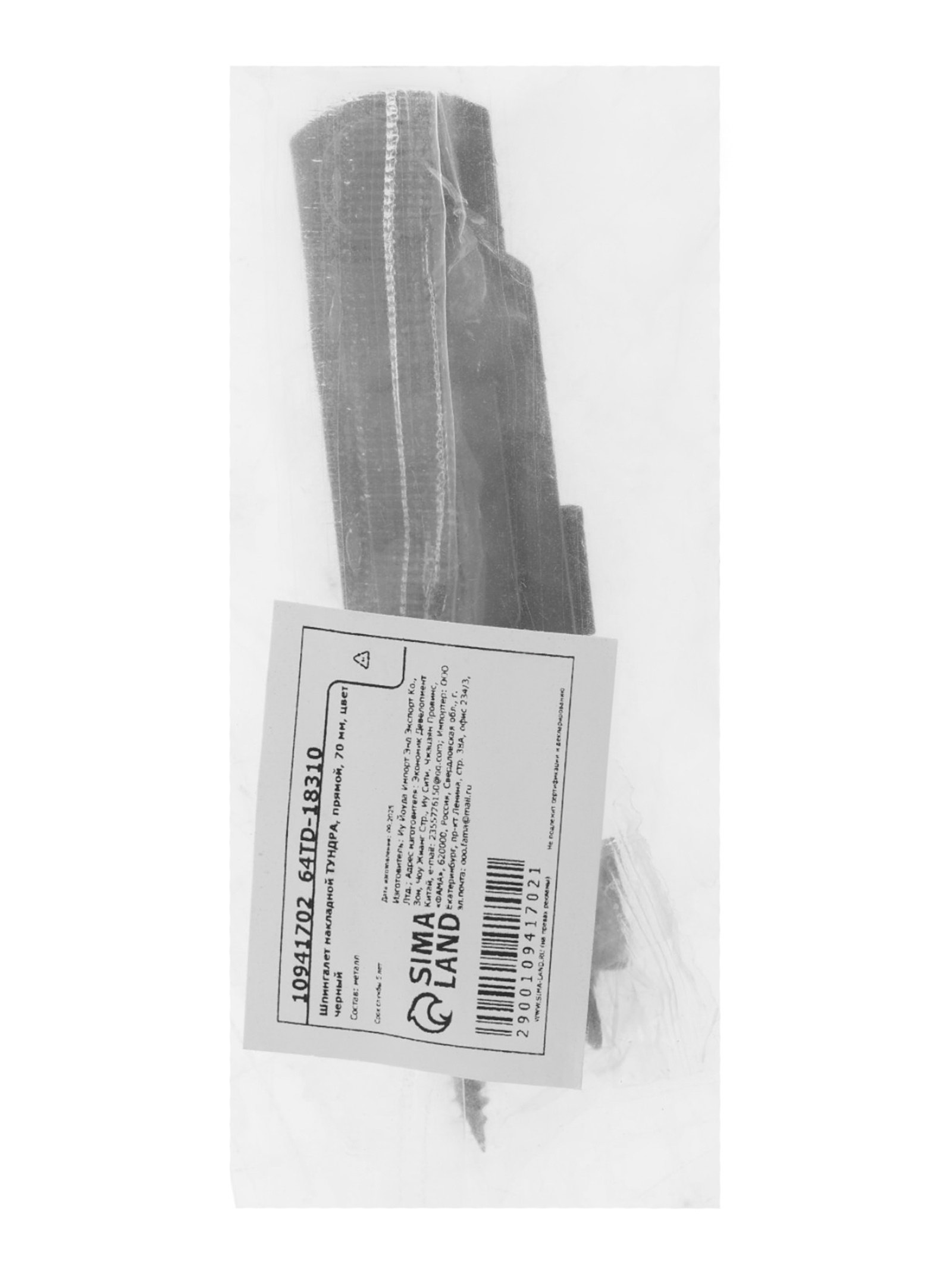 Шпингалет накладной прямой, 70 мм, черный, 2x7x5 см., ТУНДРА, Китай