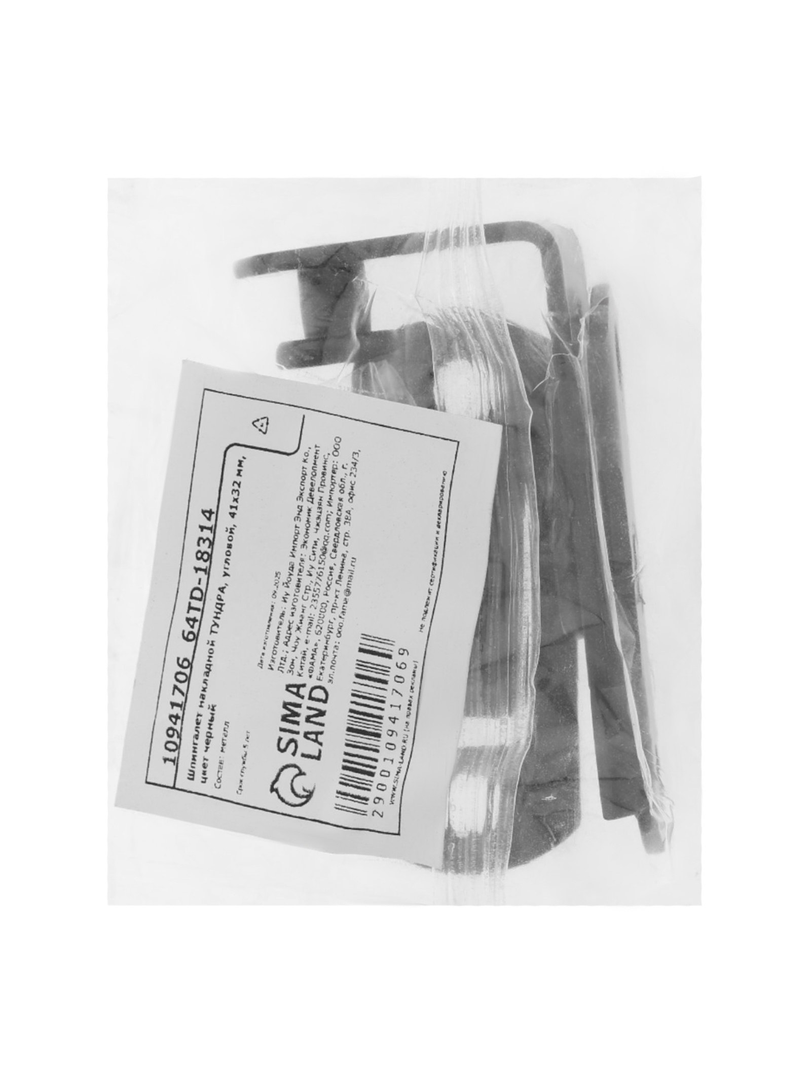 Шпингалет накладной угловой, 41x32 мм, черный, 2x4.1x3.2 см., ТУНДРА, Китай