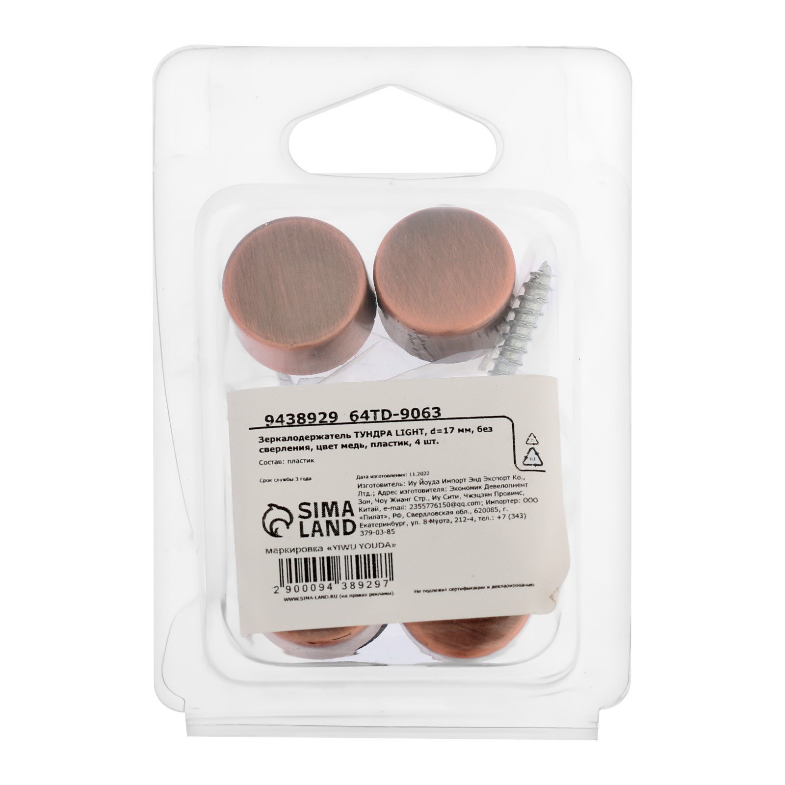 Зеркалодержатель LIGHT, d=17 мм, без сверления, цвет медь, пластик, 4 шт., 170х170х1 см., ТУНДРА, Китай