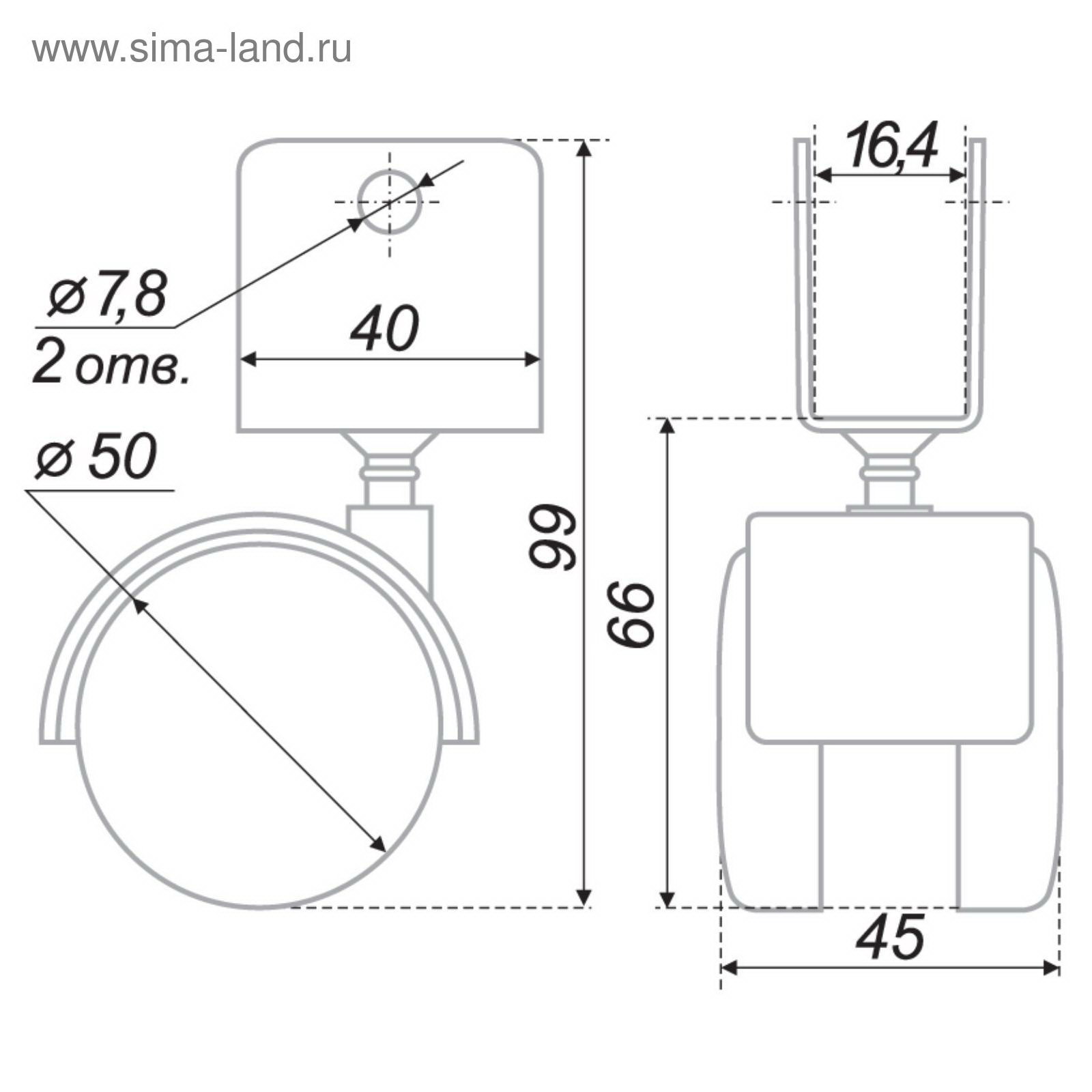 Колесо мебельное, d=50 мм, с U-образным креплением, без тормоза, 500х500х9.8 см., ТУНДРА, Китай
