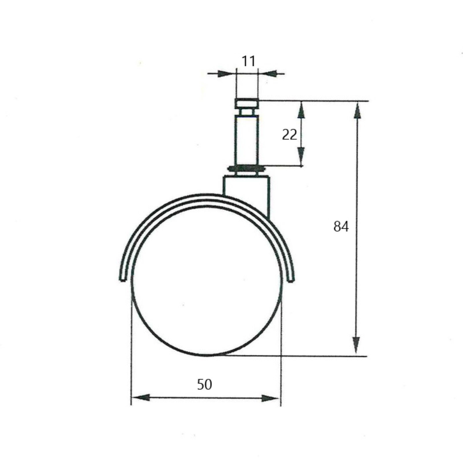 Колесо мебельное, d=50 мм, со штифтом 11x22 мм, c мягким ходом, без тормоза, 500х500х8.5 см., ТУНДРА, Китай