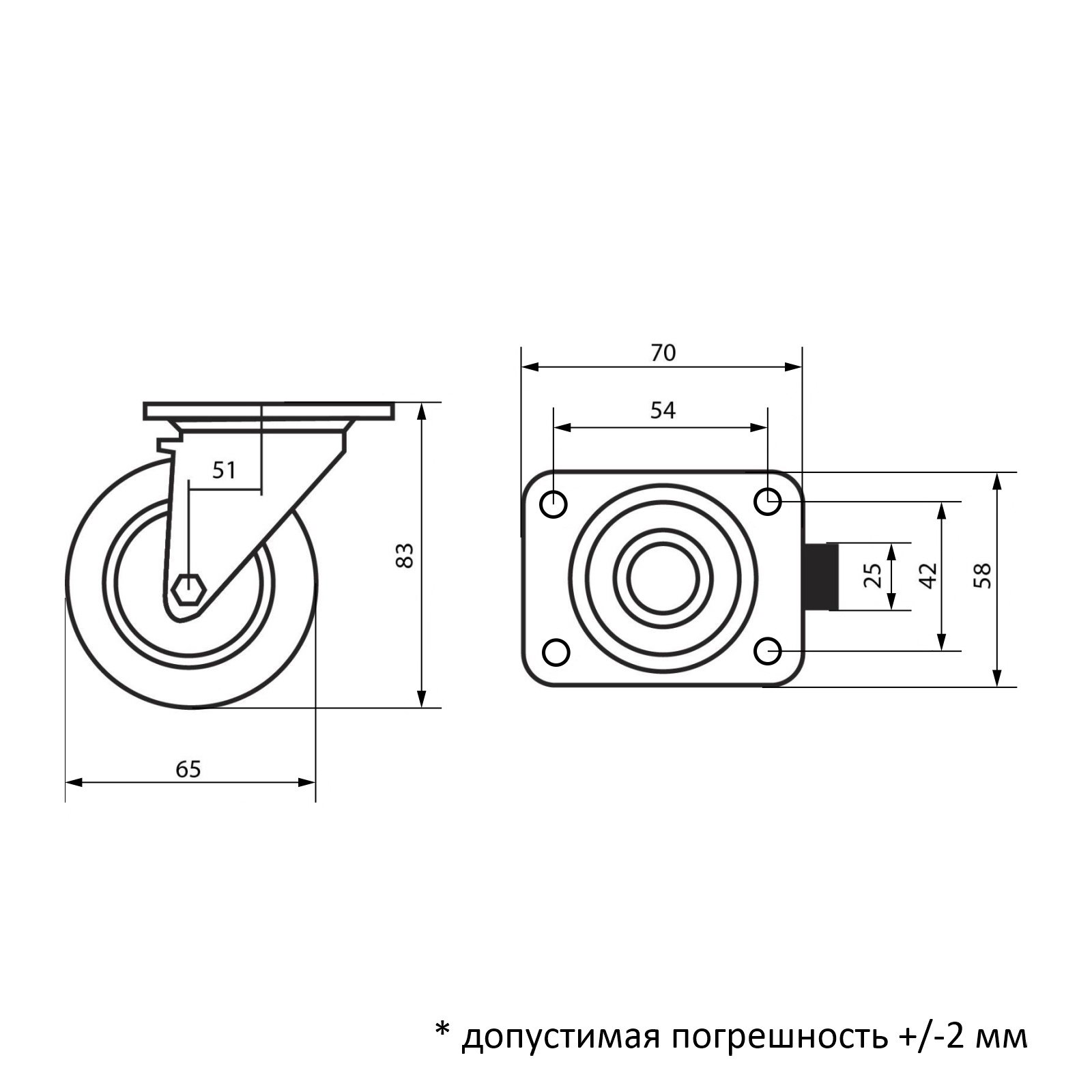Колесо мебельное, d=65 мм, на площадке, белое, 650х650х8.2 см., ТУНДРА, Китай