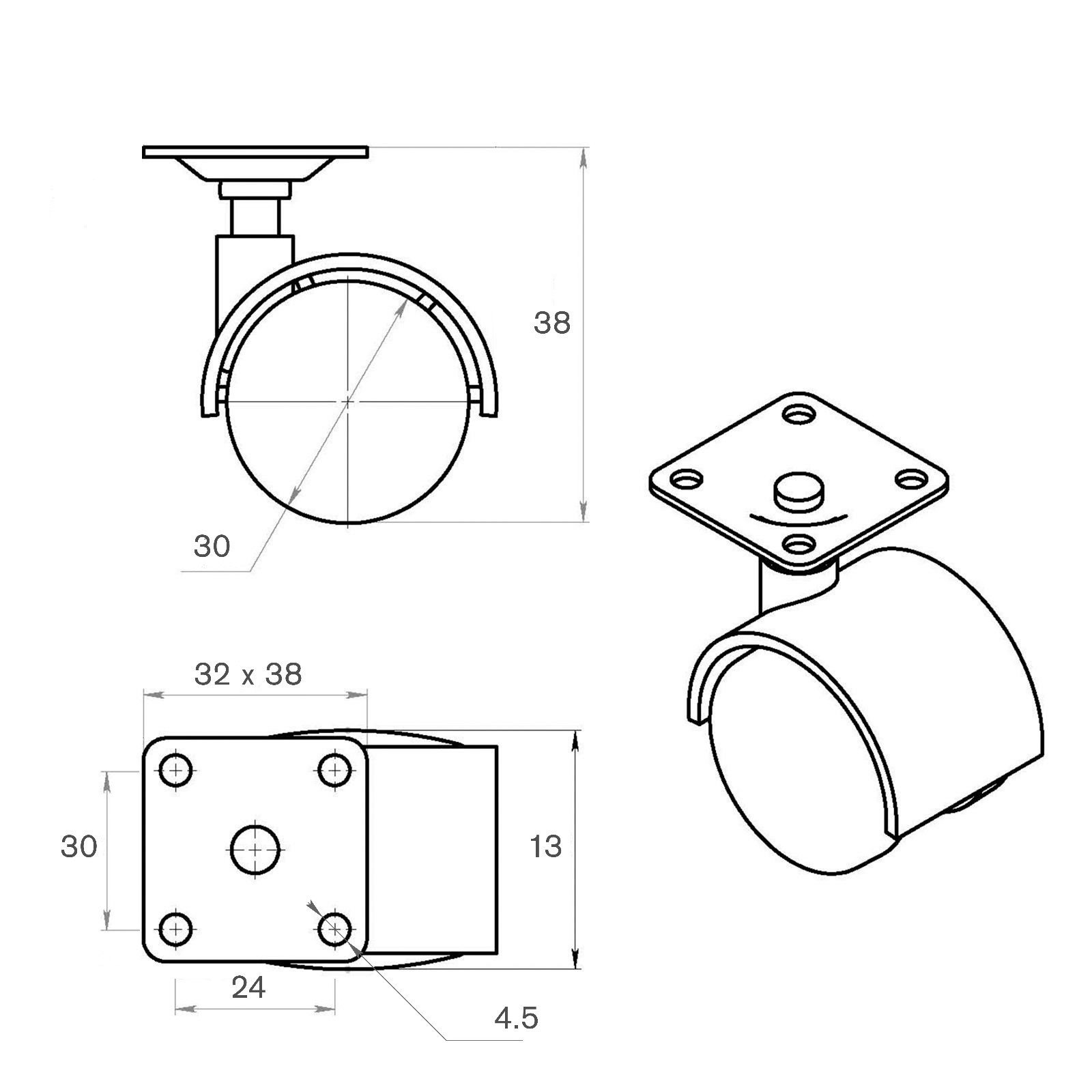 Размер упаковки: 4 x 3 x 4 см. tnved: 8302200000 Гарантийный срок, мес.: 6 Ширина планки, мм: 33 Расстояние между крепёжными отверстиями, мм: 29 Ширина колеса, мм: 13 Высота колеса (до планки), мм: 38 Длина планки, мм: 38 Материал колеса: Пластик Цвет: Чёрный Тип опоры: Мебельные колёса Maксимальная нагрузка, кг: 15 Поворотные колёса: Да Тип крепления: Площадка Наличие тормоза: Нет Свобода передвижения для лёгкой мебели! Поворотные мебельные колёса 30 мм на площадке это простой способ добавить мобильности небольшим предметам интерьера. Компактные и функциональные, они превращают статичную мебель в мобильную.
