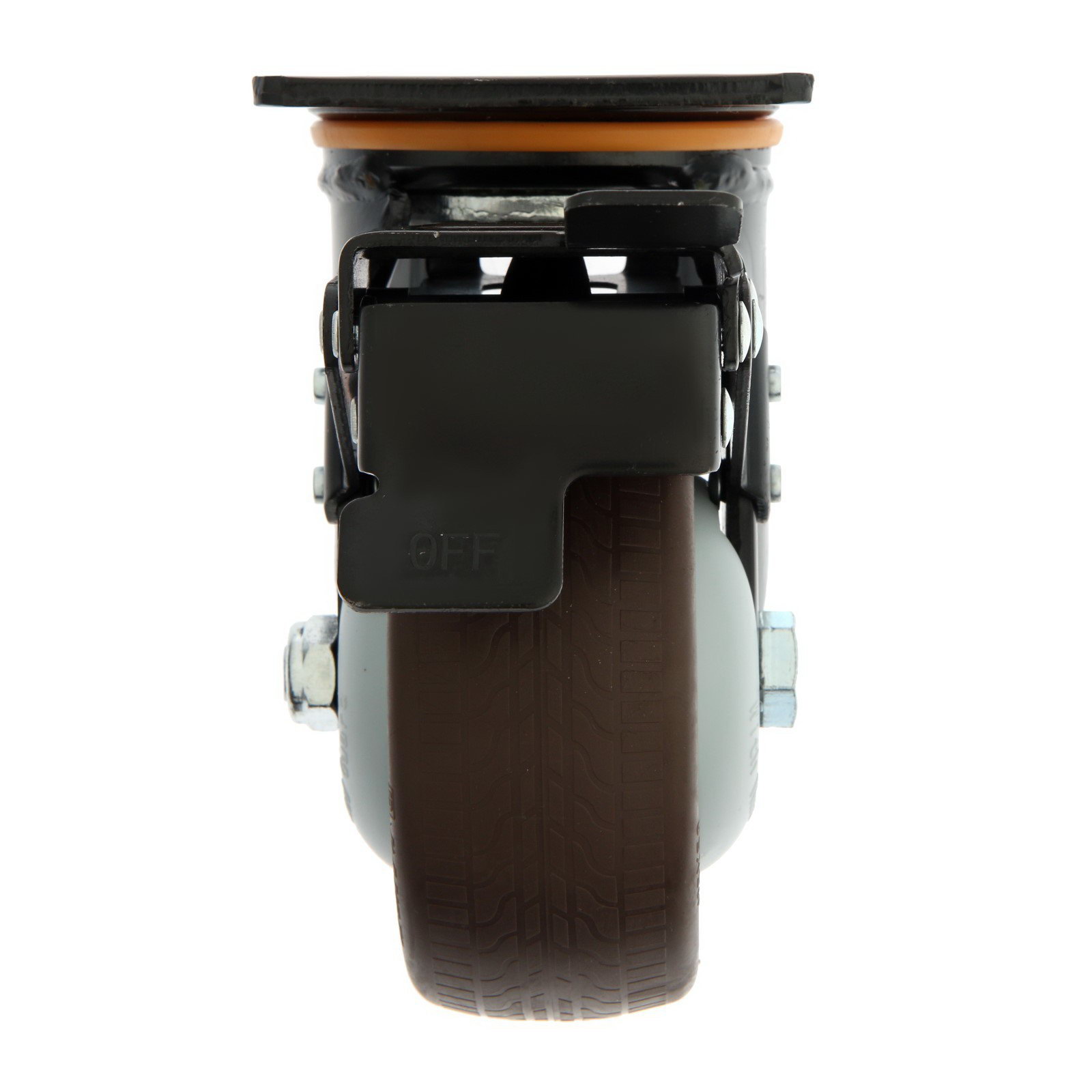 Колесо для транспортной тележек поворотное d=125 мм, на площадке, со стопором, покрытие TPR 9917, 1250х1250х9.7 см., ТУНДРА, Китай
